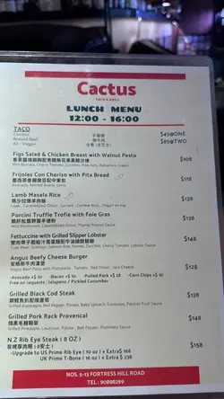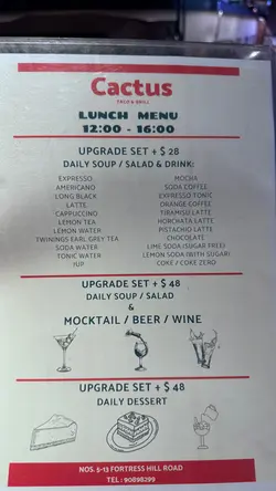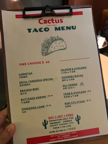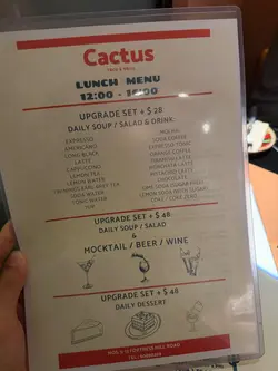 呢日同朋友一齊嚟咗呢間喺炮台山站附近嘅墨西哥🇲🇽餐廳食午餐🤣Cactus 其實係仙人掌科植物嘅總稱,仙人掌植物有超過 2000 種真係種類繁多,主要分佈喺北美洲同埋中南美洲;一般人比較熟悉嘅仙人掌科果實應該係火龍果🤣墨西哥🇲🇽絕對係值得去旅遊嘅好地方,食物亦都非常美味,雖然我去過墨西哥🇲🇽旅行但係我對墨西哥菜🇲🇽認識非常淺薄😅,更加唔識分邊啲係正宗墨西哥菜🇲🇽邊啲係唔正宗邊啲係Tex-Mex Cuisine邊啲係 Cali-Mex 😅,不過我絕對識得分好唔好食😆,如果有香港人話你知係正宗墨西哥菜🇲🇽咁 99.99% 佢都係唔識原因點解自己諗諗🤣餐廳有Lunch Menu可以自由組合,變做Lunch Set又得,咁我哋揀咗兩個,$148「燒黑毛豬鞍架 Grilled Pork Rack Provencal」同埋 $138「銀鱈魚扒配燒蘆筍 Grilled Black Cod Steak」,加 $28有「Daily Soup / Salad & Drink」,咁我哋揀咗一個湯一個沙律🤣湯係「芒果湯」:用芒果🥭煮湯非常特別,夠creamy,辣辣哋,出奇地好飲🤣沙律菜新鮮,比較特別嘅係裏邊有好厚肉嘅甜椒同埋 artichoke,咁樣墨西哥🇲🇽風味又濃厚少少🤏🤣「燒黑毛豬鞍架」厚切,肉質非常軟熟好豬味,上邊仲灑滿咗香草香料,咁食落又更加滋味🤣;仲有一條好juicy 兼清甜嘅燒菠蘿🍍可以食🤣;餐牌寫住《Grilled Pineapple, Couscous, Potato, Bell Pepper, Pommery Sauce》🤩「銀鱈魚扒配燒蘆筍」:銀鱈魚都係厚切,魚肉肉質細滑,夠新鮮好滋味🤣;仲有好爽脆嘅燒蘆筍,同埋用熱情果、Couscous 古斯米 煮嘅配菜,用百香果煮配菜真係幾特別又出奇地好食🤣;餐牌寫住《Grilled Asparagus, Bell Pepper, Potato, Baby Spinach, Couscous, Passion Fruit Sauce》🤣午餐 加$85 有兩個Tacos,Carnitas 手撕豬 同埋 Braised Beef 燉牛肉:用脆卜卜熱辣辣嘅粟米片包住 手撕豬/燉牛肉,好味😋另外單點 $108「蒜片檸汁牛油大蝦 GAMBAS AL AJILLO」:Gambas al Ajillo 真係食過唔少🤣,亦都喺西班牙🇪🇸食過傳統嘅做法🤩,呢度係新派煮法但係比較接近西班牙式🇪🇸(香港好多餐廳提供連頭大蝦🦐我諗喺西班牙🇪🇸都好難食得到🤣),呢間餐廳用咗中蝦,再加埋蕃茄同埋薯仔去煮,有啲港式加西式風味🤩餐飲 Espresso Tonic:Tonic 嘅輕微苦澀味 同 Espresso 撈埋,產生咗好 subtle 內斂嘅 Citrus 香味,清新好飲🤣餐飲 Horchata Latte:未聽過呢種 Latte 咁梗係要試吓,原來係墨西哥🇲🇽米漿做嘅 Latte,好滑,甜甜哋,仲加咗好多肉桂粉,增添香味🤣出奇地好食嘅一餐🤣…Read More