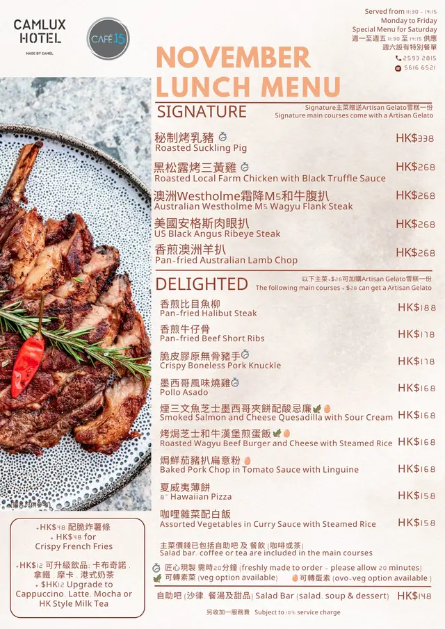 雖然九龍灣叫做貴為「東九龍金融中心」,不少銀行及保險、金融等公司進駐,要找個安靜又比較得體的地方吃商務午餐傾公事可不是易事,像樣的中價位餐廳都相繼關門大吉。早前同事 R 小姐話帶我去酒店食 lunch,話可安靜地傾吓偈,我有點驚訝附近還有這樣的地方?原來它叫「Camlux Hotel」,前身是「駱駝牌」工廠舊址,現在華麗轉身,改建成為酒店。「駱駝牌 Camel」自 1940年開始在香港生產真空壺,我記得小時候它也曾在我家出現過。現在酒店地下變成 Café,亦傳承了「駱駝牌」的歷史,展出不少珍藏如手繪原圖、模板、模具等, 還有七彩水壺打卡牆。吃飯之前我走了一個圈參觀,恍如走進香港以往工業的輝煌時期:當然在時代巨輪推進下,香港工業要轉型,品牌要活化,才能配合步伐,屬無可厚非。難得能將工廠變成一個悠閒酒店及西餐廳,同時亦保留獨有的懷舊特色,甚別具一格。餐廳環境很安靜,午餐是半自助西式,主菜價錢已包任吃自助吧的食物及飲品。選好主菜後,就出去自助吧取頭盤,有各式沙律、cold cut、湯等等:吃了幾款沙律都很對我胃口,配搭不錯,很多都加入水果例如西柚肉、橙肉、蘋果粒、新鮮柚子等等,而且夠凍 (這點很重要!),甚 refreshing,我少有地吃了兩轉呢:是日餐湯「甘筍湯」:邊吃邊和 R 小姐傾偈,大約半小時後主菜上場。「Slow-Cooked Duck Confit」$188慢煮法式油封鴨腿,做得出乎意料的好:向侍應查詢一下大廚的做法。鴨腿在油封前先撒上鹽、蒜、百里香等調味,用油覆蓋冷藏約三天,然後拿出來先慢煮,後再經烤焗至皮脆:色澤金黃,吃時感到皮脆肉嫩,鴨肉能做到豐腴美味,確是精心處理的心機菜:伴碟的不是澱粉質,而是雜菜,以鮮香的鴨肉汁提味,整體效果不錯。「Linguine with Geoduck in XO Sauce」$158XO醬象拔蚌扁意粉,中材西煮,看得出大廚設計菜式的大膽與野心:象拔蚌片份量甚多,吃起來也新鮮,可惜調味太淡,釋放不出它的甜,亦不太品嚐到 XO醬的味道,要自己下鹽提味:扁意粉反而做得不俗,質地具 al dente 口感,若果用來轉做「蒜蓉橄欖油扁意粉」(Aglio Olio),相信效果會更佳。最後喝了杯熱齋啡:若果想吃甜品或水果,可到自助吧枱有任吃的,水果都很新鮮:另外我們的主菜選擇,可加 $28 top up 吃 Artisan Gelato:整體用餐體驗不錯,沙律與油封鴨均做得好,象拔蚌意粉有改進空間。另見其它主菜還有西式烤乳豬、美國安格斯牛扒、澳洲羊架等等,值得下次再來返兜。加上有得睇展品,侍應服務亦有禮,頗賞心悅目,下次可和工作 Partners 們來吃 Business Lunch,相信會是個不錯的選擇。…查看更多
