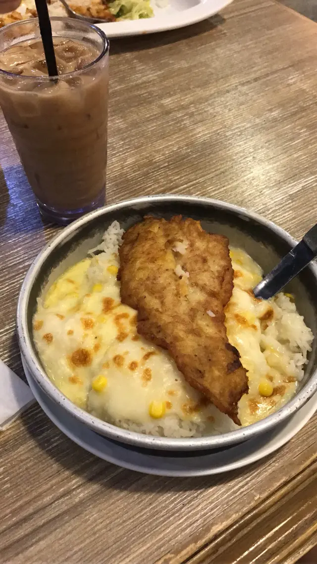 。馬上轉枱到門口附近位置,但仍隱隱約約傳來臭味,唯有快快手手,食完就走! 呢款芝士粟米汁焗煎魚柳飯,聞落都唔錯,但塊魚柳'薄切切',又無嚟味道⋯我家二少爺食剩半碟,寧願'畢'大少的米蘭肉醬煎蛋飯食。…查看更多