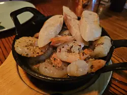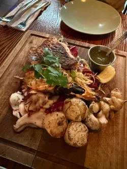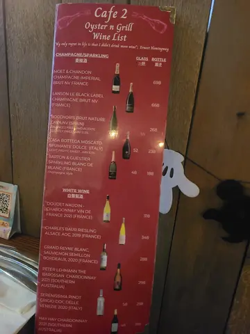 琴晚同朋友兩個人去咗「Cafe 2 Oyster n Grill」食生日晚飯,本來諗住簡單食啲嘢,點知見到餐牌咁吸引,唔小心就叫到成張枱都係嘢食,變成一場非常豐富嘅盛宴。整體嚟講,食物份量十足,性價比極高,係一次喜出望外嘅用餐體驗。 招牌生蠔我哋先試咗餐廳嘅招牌菜——生蠔有「Spain Pearl」、「Elizabeth」同「St. Martin」係三款唔同品種嘅生蠔,每款都點咗兩隻。作為餐廳主打,新鮮程度有保證,海水味濃郁,口感creamy,為呢餐飯揭開完美序幕。除咗生蠔,其他菜式亦同樣出色:檸汁醃八爪魚 :非常開胃嘅前菜,八爪魚配上檸檬汁、莎莎醬同牛油果,味道清新,口感爽彈。西班牙蒜味蝦 :熱辣辣嘅蒜油浸住十隻鮮蝦,香氣撲鼻。配埋多士一齊食,索晒啲蒜油精華,非常惹味。炭燒海鮮拼盤:呢個拼盤係是晚嘅重頭戲之一!一上枱份量十足,有齊炭燒大蝦、八爪魚、魚柳同帶子等,海鮮經過炭燒後焦香四溢,兩個人分享綽綽有餘。燒西班牙豬肋骨:成條 Full Rack pork rib上枱,賣相相當震撼。豬肋骨配上黑醋燒烤醬(肉質軟腍,味道酸甜,可以平衡返豬肉嘅油膩感,非常適合食肉獸。食完主菜,甜品環節亦唔可以錯過:鐵板朱古力布朗尼伴雪糕 :熱辣辣嘅鐵板上放住布朗尼同雪糕,淋上朱古力醬時「滋滋」作響,視覺同味覺都係一種享受。朱古力心太軟伴雪糕:經典之選,切開蛋糕時暖暖嘅朱古力漿緩緩流出,配上冰凍雪糕,一冷一熱嘅口感,為呢餐飯畫上完美句號。任飲紅酒今次我哋揀咗 **$98 Free Flow: 呢支嚟自南澳嘅紅酒。呢支 2021 年嘅 Cabernet Sauvignon Merlot 混釀紅酒,果香濃郁,口感順滑,配搭豬肋骨同海鮮都相當唔錯,以呢個價錢嚟講,性價比極高。總括嚟講,考慮到有新鮮嘅招牌生蠔、份量十足嘅海鮮拼盤同豬肋骨,再加埋$98任飲澳洲紅酒,整體體驗物超所值。相信我哋好快會再返嚟。如果想同朋友大夥兒聚餐,或者想享受一場豐富嘅海鮮大餐,Cafe 2 Oyster n Grill 絕對值得推薦。…查看更多
