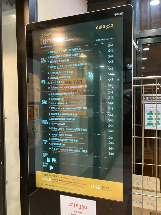 Cafe 330 (薄扶林) 網址: https://s.openrice.com/QrbS0A7i200 地址: 香港薄扶林香港大學莊月明文娛中心2樓203室(百佳對面) 電話: +852 27943778