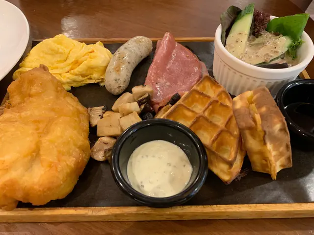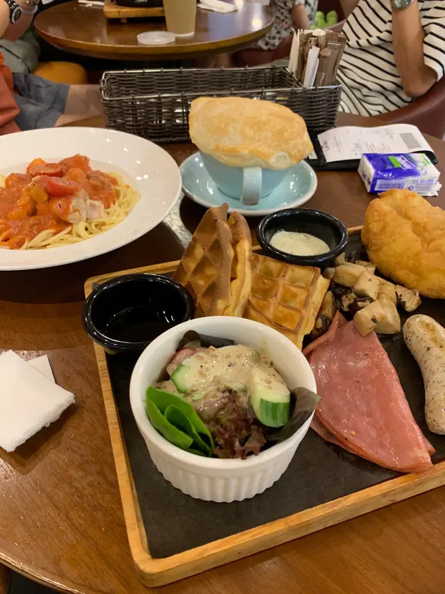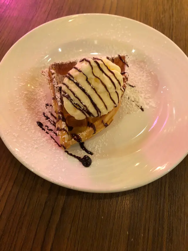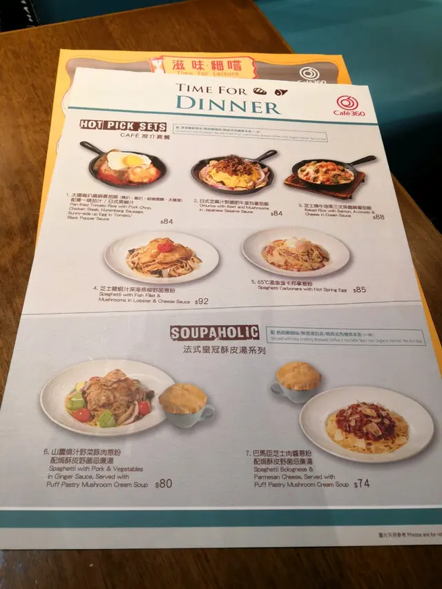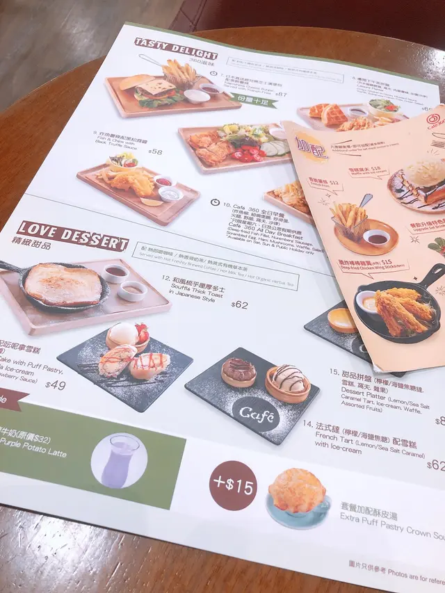 星期六無所事事,和朋友來到Cafe360歇一歇。之前在商場看到廣告已經想來試一試,但位置不太起眼,所以常常都忘記了。星期六的下午,人不算多,很快就可以入座了。和朋友叫了兩份下午茶一起Share。【休閒下午茶拼盤】芥末蜜糖脆雞、窩夫、肉醬薯條、田園沙律個人認為整個拼盤最好吃的就是肉醬薯條了,薯條新鮮炸好配上肉醬十分滋味。至於脆雞和窩夫方面,兩樣都略為乾身,感覺普通。【和風梳乎厘厚多士