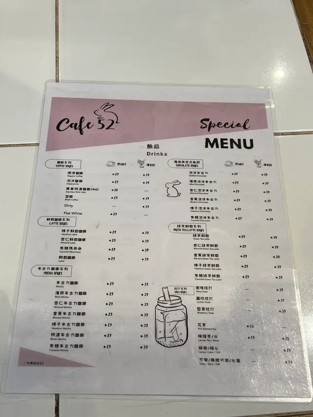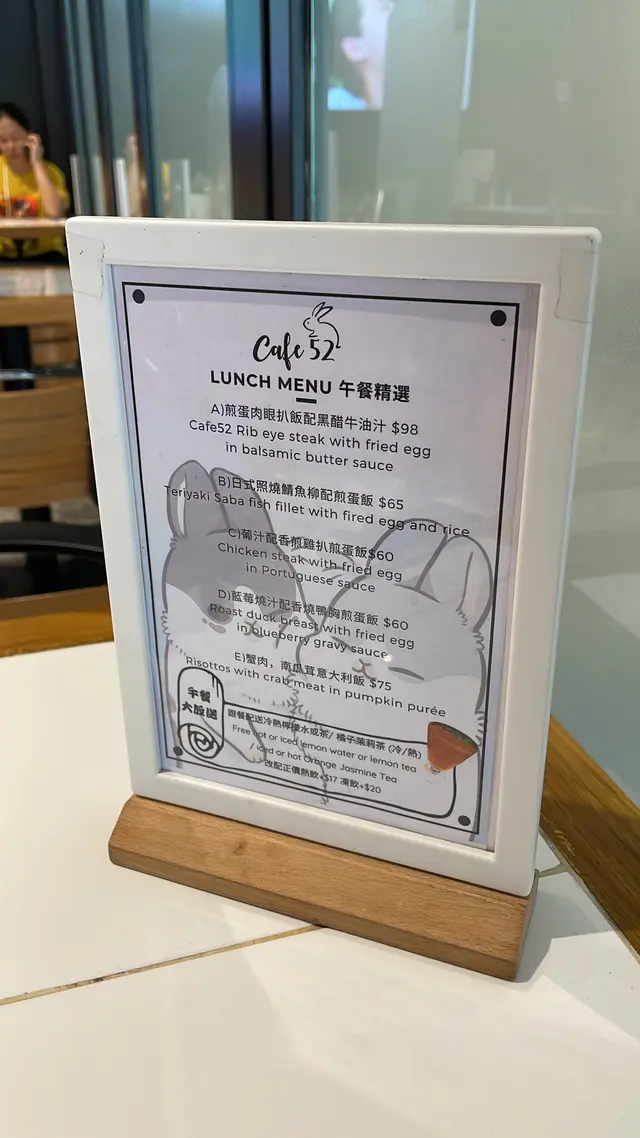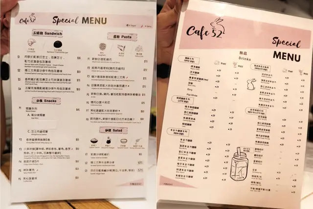 通常喺元朗搵食都好少會去朗屏 其實朗屏都有唔少既餐廳🍴呢一日晚餐就去咗Cafe 52🐰呢度有得唔得室外同室內嘅座位🪑 餐廳既裝修都好少女💖粉粉的 係我鍾意既style🤭呢餐晚餐我地叫咗肉眼扒配車打芝士忌廉芝士配牛角包及薯條🥐、新鮮白菌、雞肉、蕃茄乾配蒜香辣味橄欖油寬條麵🍝、煙三文魚牛油果沙律🥗、黑松露薯條🍟、玫瑰梳打🌹、荔枝梳打🍹、薄荷朱古力咖啡☕️整體黎講Cafe52嘅價格相對平🤩有樣特別之處就係呢度既包類、意粉、醬汁都有唔同既選擇✅唔似好多cafe都係固定嘅👐🏻環境都好舒服😌店長十分友善🥰而且都見到唔少人係一家大細黎用餐😋非常適合同朋友或者家庭聚餐👨👩👧👦…查看更多