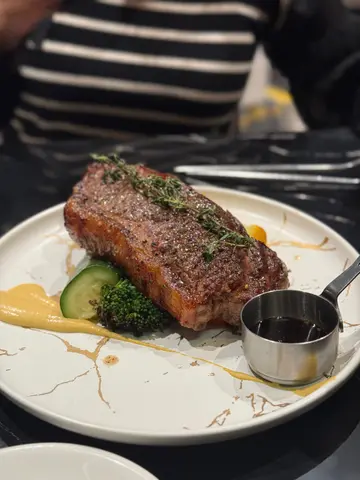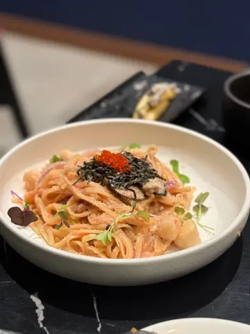 香煎紐西蘭肉眼扒肉質鮮嫩,外脆內軟,完美的火候讓肉汁四溢,搭配簡單的香草調味,突顯了肉的天然風味。每一口都讓人感受到滿足,絕對是肉食愛好者的首選。明太子珍珠帶子意粉創意十足的料理。意粉煮得恰到好處,與明太子的香濃醬汁相得益彰,帶子新鮮滑嫩,為整道菜增添了海鮮的鮮美。搭配的香蔥與辣椒點綴,讓口感層次更加豐富。這兩道菜無論是味道還是擺盤,都讓人印象深刻,值得一試!