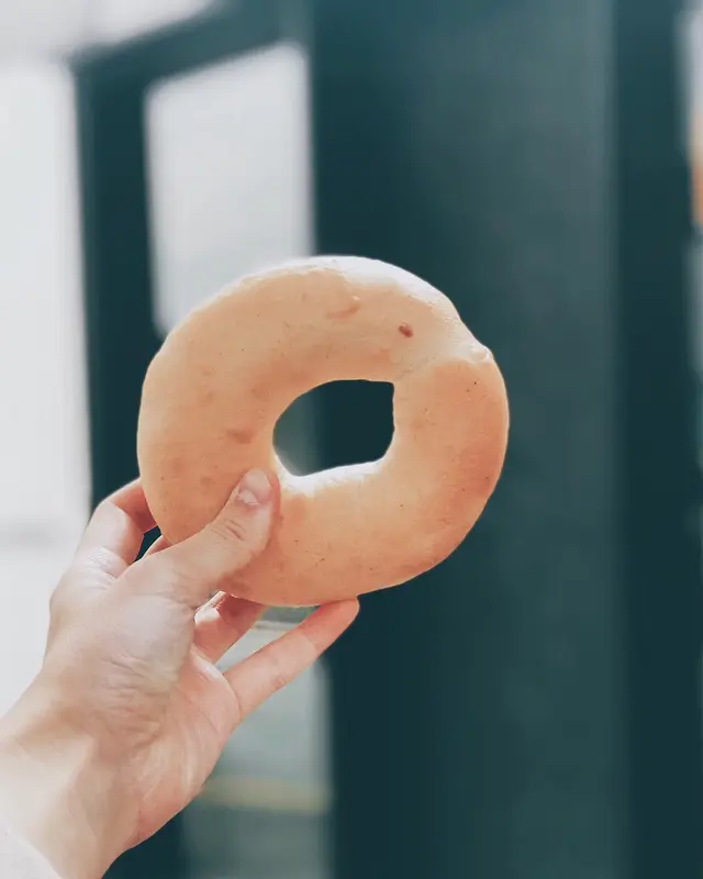Original bagel 原味貝果 ($15)-街角有這麼一間不起眼的小店,沒有亮麗的櫥窗也沒有令人注目的門牌,黑白簡約的外牆,令它混進了周遭的民居。上週參觀博物館的同學說,若不是麵包的香氣傳出了巷里根本不會發現這裡藏著一間麵包店。慕名而來的結局卻是有點失望,bagel又冷又硬,其他包也沒有傳說中的香味四溢,也許因為不是新鮮出爐,但落差也挺大的🙁 於是留了一半回去叮熱再嚐,熱騰騰的bagel果然搶回了不少分,但第一印象始終令人失望。查看更多
