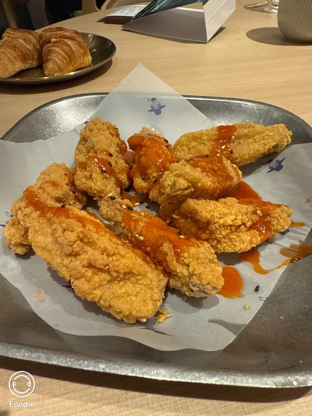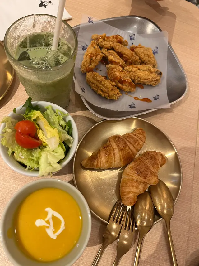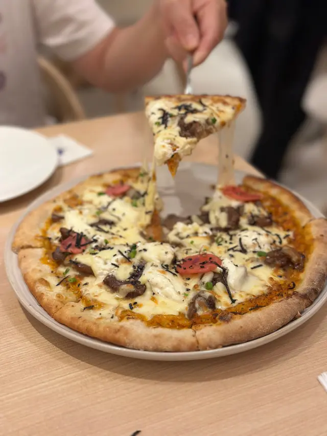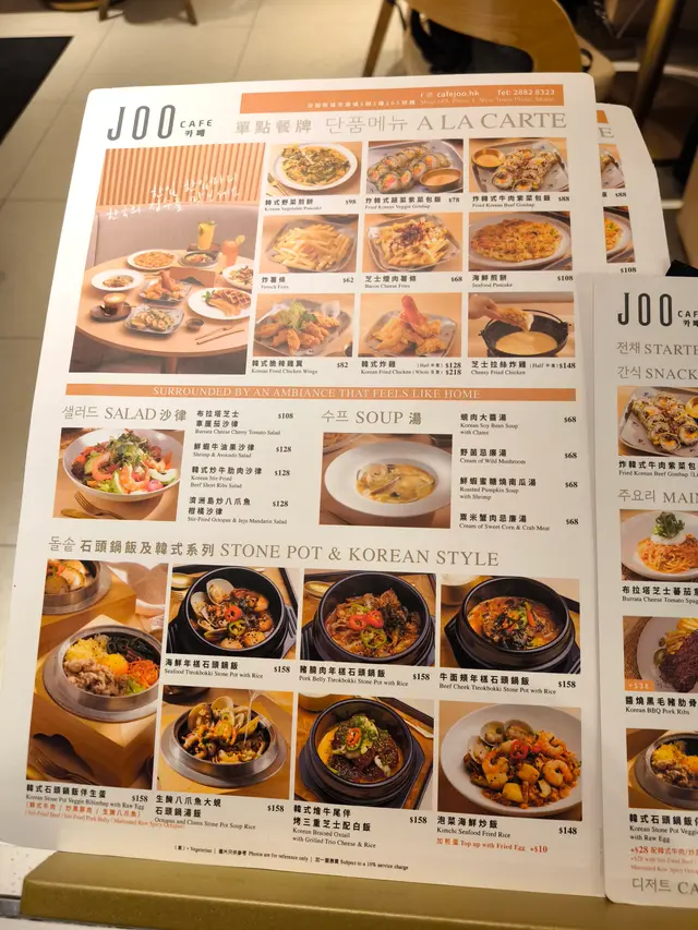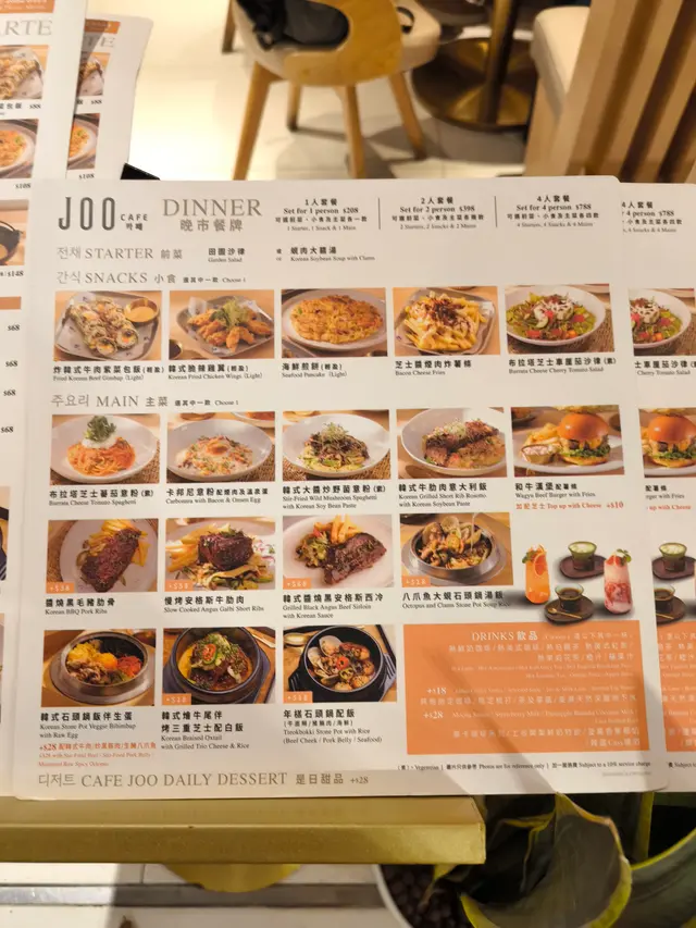星期五晚黎到沙田新城市, 周圍既餐廳都好多人排隊,行下行下較為角落見到哩間cafe joo。 望入去環境唔錯, 又好似唔洗點等。就試下佢。我地一行3人叫左個2人晚市套餐 小食: 韓式脆辣雞翼 , 海鮮煎餅 (全部輕盈份量)主食: 韓式牛肋肉意大利飯 , 韓式石頭鍋飯伴生蛋 (加炒黑豚肉)另外再叫左個千島醬豬五花PIZZA + 炸韓式牛肉紫菜包飯。然後一人一杯野飲。佢D小食全部都唔錯。 意大利飯都好食,不過咸左D。PIZZA 對個人黎講有驚喜