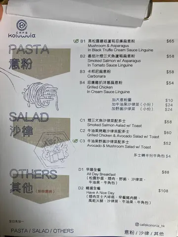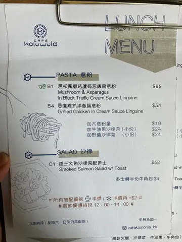 原本諗住喺度食晏,不過因為坐滿晒人,趕唔切所以嗌咗杯咖啡拎走☺️驟眼睇過個餐牌,其實set lunch都幾抵,$40 幾一碟意粉,有優惠價錢加飲品,都唔錯呀