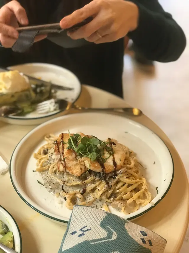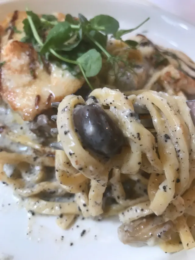 Slow cooked chicken breast pasta with truffle and cream