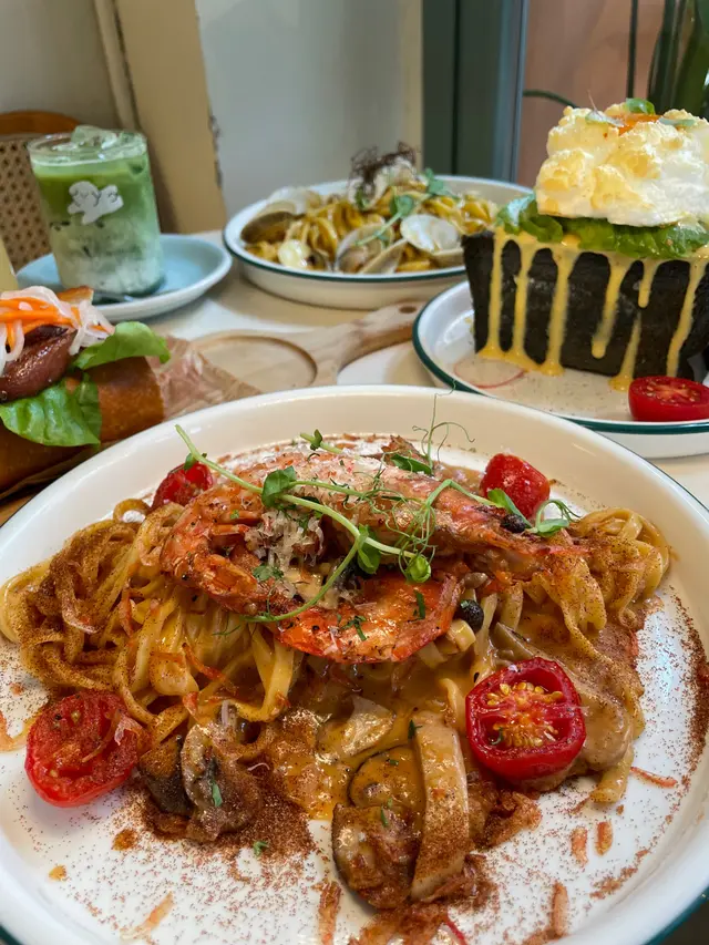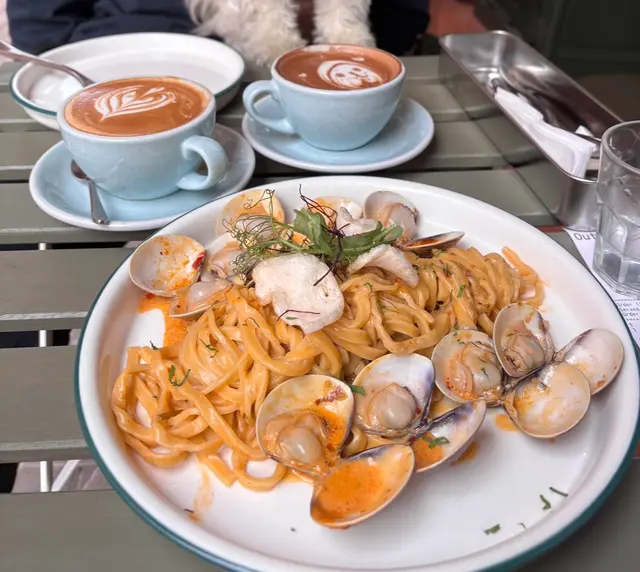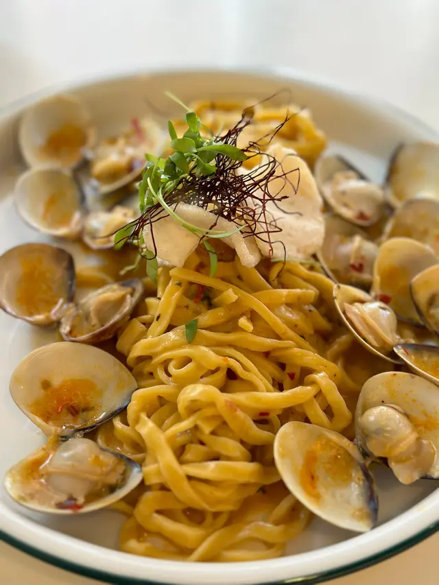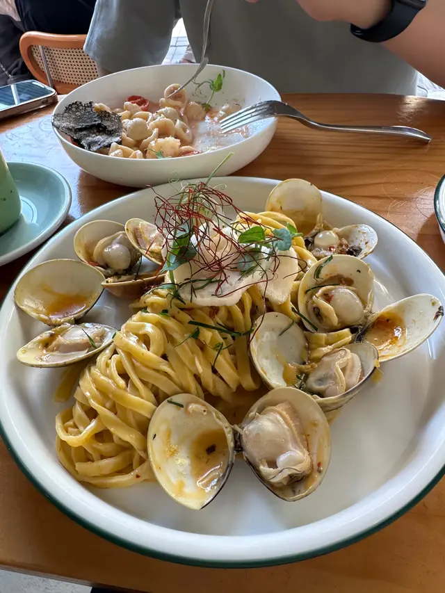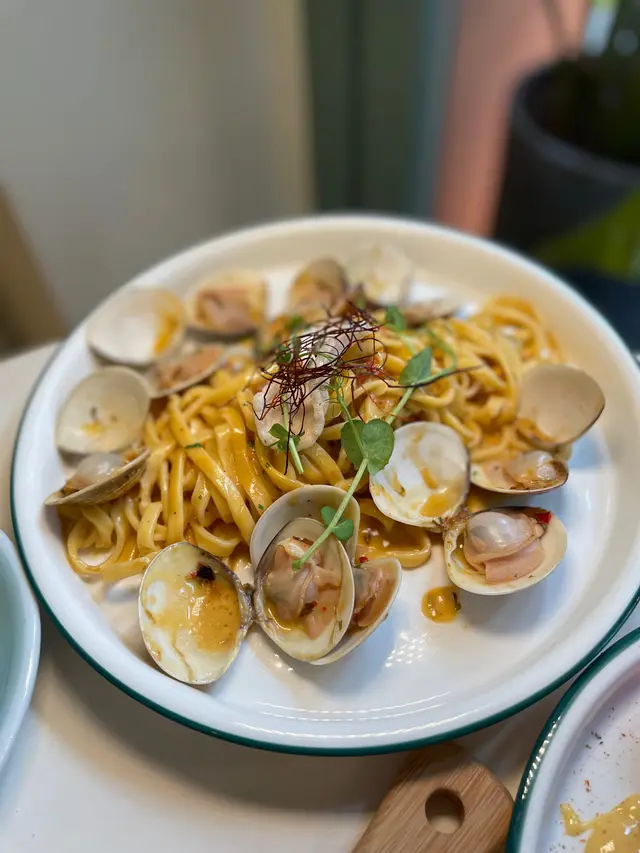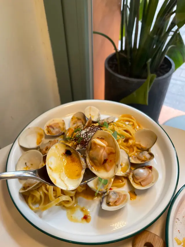 呢間餐廳環境靚,細細間仲可以帶寵物一齊用餐,令人感到好放鬆。試咗香辣蒜香欖油意粉,意粉煮得啱啱好,唔會軟爛,搭配上香辣嘅蒜香同橄欖油,味道香濃,辣味適中。蜆肉白酒汁意粉,呢個就更加驚喜!蜆肉新鮮,味道鮮甜,搭配嘅白酒汁滑溜,完全唔會搶走蜆肉嘅風味,反而令整道菜更加出色,真係好享受。每一口都有海洋嘅味道~最後,我仲試咗炸魷魚圈,外脆內嫩,炸得金黃酥脆整體來講,cafe pawsitive嘅食物質素高,味道出色,服務亦好好。如果你想搵個輕鬆嘅地方同寵物一齊食,呢度絕對值得推薦!…查看更多