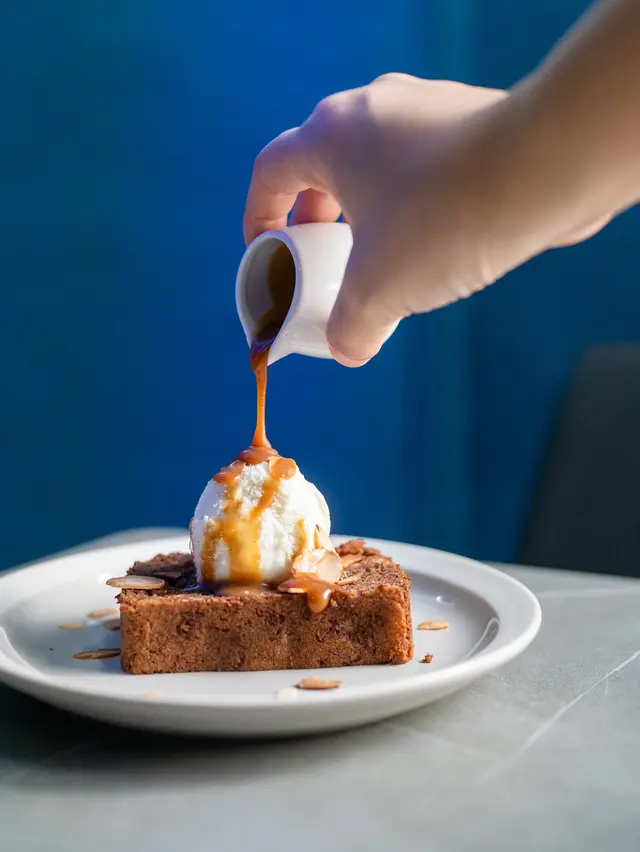 肉桂粒粒蘋果蛋糕配雲尼拿意式雪糕及蘋果酒焦糖醬