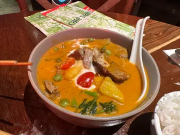 This Thai restaurant is located on Forbes Street in Kennedy Town, which has been opened since 1999, offering authentic Thai flavours to customers. On this Saturday evening we came early, and got a good seat at the corner. The décor has a bit of dated look, with a tuk tuk in the restaurant, right in front of the bar. On the other side is a semi-open kitchen where we can get a glimpse of the chef and his team preparing the dishes.We have Chef Johnny’s Platter ($189) to start, which includes Fried Prawn Cake, Spring Roll, Grilled Chicken & Pork Satay, served with Achar, Tamarind and Sweet Chili Sauce. A large portion suitable for four persons, there are also some prawn crackers on the side. Each of the snacks are quite nice, with the satay being my favourite, marinated well and the meat was not dried after grilling.If I have to pick, the Tom Yum Goong ($109) is the best among those we ordered. Asked to be less spicy, the soup has Jumbo Shrimp, Coconut Milk, Shallot, Chili, Cherry Tomato, Oyster Mushroom, Thai Herbs & Spices, with its rich and great complexity of the flavours really amazing. I believe the normal spiciness would make it even better. A definite must order.We also have Bangkok Style Roasted Duck Red Curry ($149) with Pineapple, Cherry Tomato, Thai Eggplant, Long Bean, Basil, Coconut Milk. The curry is not spicy, with a nice sweetness and appealing for all ages. The duck breast was good, but in my opinion the pineapple pieces are the most delicious. The portion is very big so we ended up not able to finish all. To pair with the curry, we had two servings of Steamed Thai Rice ($44) but the rice was so wet it was like gluey lumps. A setback. Services are good, with the staff friendly. Together with a Fresh Young Coconut ($55) and a Tuk Tuk Draft Beer ($78), the bill on the night was $686. The dishes in fact are very reasonable in price, but the rice and drinks are a bit over. Still worth to come and try out, especially the Tom Yum.…Read More