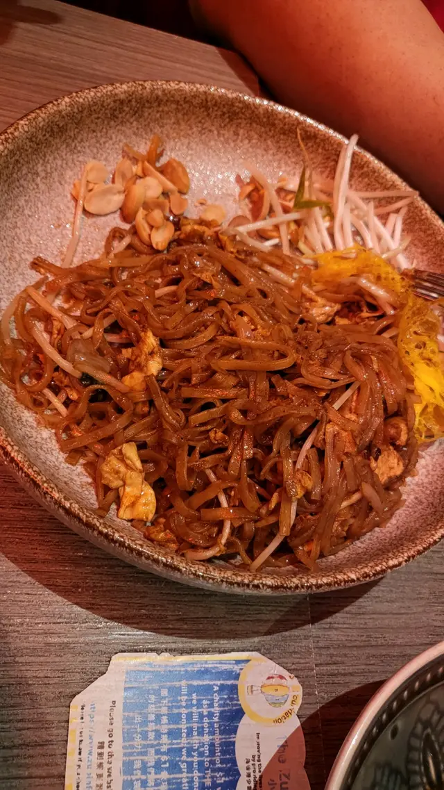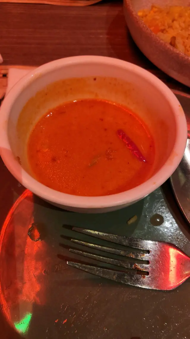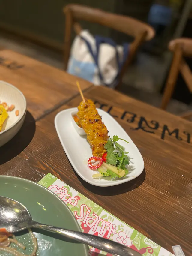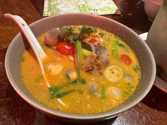 This Thai restaurant is located on Forbes Street in Kennedy Town, which has been opened since 1999, offering authentic Thai flavours to customers. On this Saturday evening we came early, and got a good seat at the corner. The décor has a bit of dated look, with a tuk tuk in the restaurant, right in front of the bar. On the other side is a semi-open kitchen where we can get a glimpse of the chef and his team preparing the dishes.We have Chef Johnny’s Platter ($189) to start, which includes Fried Prawn Cake, Spring Roll, Grilled Chicken & Pork Satay, served with Achar, Tamarind and Sweet Chili Sauce. A large portion suitable for four persons, there are also some prawn crackers on the side. Each of the snacks are quite nice, with the satay being my favourite, marinated well and the meat was not dried after grilling.If I have to pick, the Tom Yum Goong ($109) is the best among those we ordered. Asked to be less spicy, the soup has Jumbo Shrimp, Coconut Milk, Shallot, Chili, Cherry Tomato, Oyster Mushroom, Thai Herbs & Spices, with its rich and great complexity of the flavours really amazing. I believe the normal spiciness would make it even better. A definite must order.We also have Bangkok Style Roasted Duck Red Curry ($149) with Pineapple, Cherry Tomato, Thai Eggplant, Long Bean, Basil, Coconut Milk. The curry is not spicy, with a nice sweetness and appealing for all ages. The duck breast was good, but in my opinion the pineapple pieces are the most delicious. The portion is very big so we ended up not able to finish all. To pair with the curry, we had two servings of Steamed Thai Rice ($44) but the rice was so wet it was like gluey lumps. A setback. Services are good, with the staff friendly. Together with a Fresh Young Coconut ($55) and a Tuk Tuk Draft Beer ($78), the bill on the night was $686. The dishes in fact are very reasonable in price, but the rice and drinks are a bit over. Still worth to come and try out, especially the Tom Yum.…查看更多