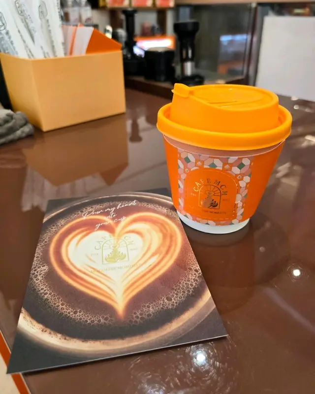 CAFEMCM (尖沙咀) 📍尖沙咀彌敦道132號美麗華商場1期地下Kiosk LG-D咖啡是生活不可或缺的一部分!CAFEMCM成立於2023年,老闆本住理念「世界上沒有最好的咖啡☕️,只有最適合你的咖啡」,用上在世界各地搜羅的優質咖啡豆,加上世界咖啡評鑑師親自煮理,必定調配到心中獨有的味道。鮮艷出眾的名牌橙色為店鋪主調,打破常規的黑白灰,好有記憶點!仿地磚的配色回憶起兒時嫲嫲屋企的懷舊地磚,讓人感到溫暖共鳴。每買一杯咖啡附贈的咖啡套上都可打開表層,完來是心靈雞湯語錄金句,讓人有屬於自己的MCM= MY COFFEE MOMENT 😍附一種拆盲盒的期待感。店中橙色懷舊郵筒📮絕對是亮點!店家真的可以幫你免費寄出其數款精美自家設計的Post Card,隨買咖啡一杯可送post card 一張,讓你把想說的話寫下寄給自己屋企人。特調橘子回憶MEMORY(HKD 50): 非常有層次的一杯咖啡,分了數層LAYERS,呷一口清新氣泡🫧梳打加上橘子醬橙汁再撞入咖啡中,清新得很,最特別是真的有橙肉顆粒感,絕對顛覆你對咖啡的味道,升了另一層次。生椰乳咖啡☕️(HKD 45): 厚椰乳既有椰漿的絲滑濃郁,又有椰子水的輕盈清甜,搭配醇厚的濃縮咖啡最適合不過,椰子味更似百年傳統老字號甄沾記的椰子糖味。臨走都要掃走幾盒掛耳式咖啡包番屋企同屋企人分享高質咖啡☕️。題外話:店員話母親節當日買一杯咖啡送康乃馨🌷一支,送比媽媽做禮物🎁慶祝🍾不錯總結:咖啡控不要錯過 本土炮忘憂咖啡店 能量滿滿 心靈雞湯語錄#尖沙咀#美麗華商場一期#咖啡界愛馬仕#名牌橙#cafemcm#橘子回憶#生椰乳咖啡#掛耳包咖啡#精美禮盒#postcard#免費寄出#木土炮咖啡店#有理念#有溫度查看更多
