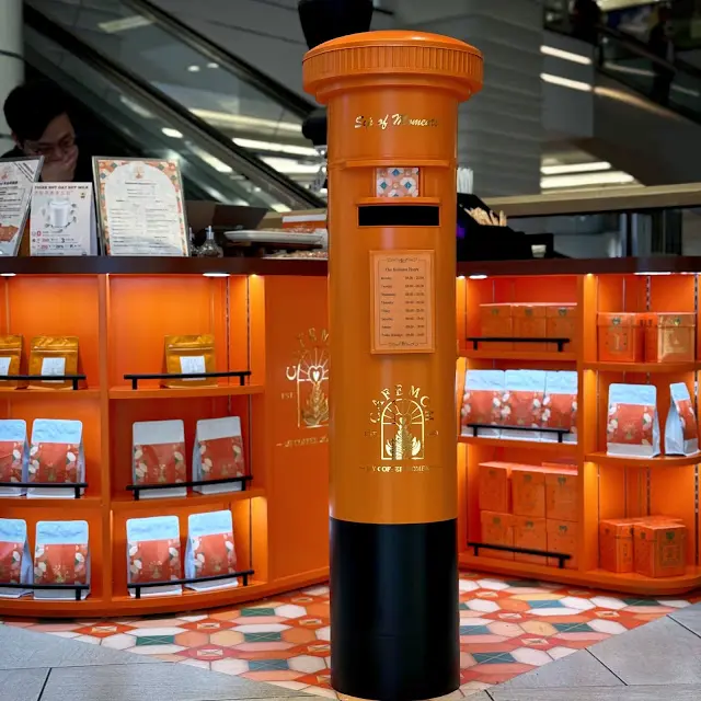 行經尖沙咀美麗華廣場, 遠處見到有間橙色嘅咖啡店☕️橙色望落好精神,所以遠遠都見到行近再望下,竟然有橙色郵筒,好特別忍唔住要買杯咖啡支持下,打打卡☕️點左杯熱嘅美式咖啡,果香濃郁,口感淡雅和清爽,入口甘甜順滑,好好飲☕️再買幾包掛耳咖啡,全部包裝都好精美店員好親切,仲主動教我用適當嘅水温沖咖啡原來角落有自家設計嘅明信片免費提供畀客人隨心寫下心意後✉️可遞進郵筒中寄出成件事好有心思啊值得一讚😍👍🏻👍🏻查看更多