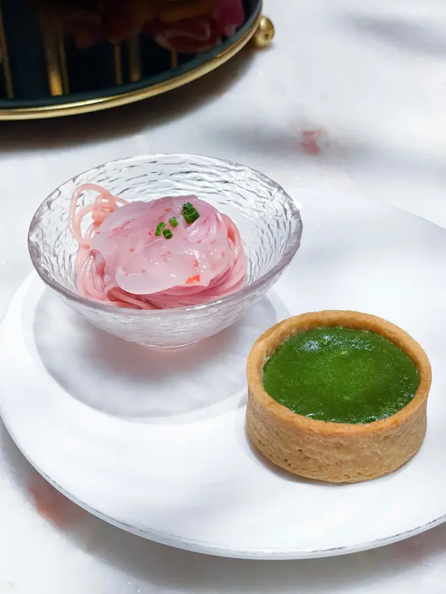 Japanese Mentaiko Somen - Pink Dream Planet:Served on a bed of delicate somen noodles, the vibrant pink mentaiko sauce immediately catches the eye. The flavors are equally captivating, with the creamy richness of the mentaiko perfectly complementing the lightness of the somen noodles. Each bite is a burst of umami goodness, leaving a lingering satisfaction that is simply irresistible.Pan-fried Duck Breast Pancake with BBQ Sauce:The dish is a harmonious blend of flavors and textures, with tender slices of duck breast nestled atop a fluffy pancake. The BBQ sauce adds a smoky sweetness that perfectly balances the richness of the duck, while the crispy edges of the pancake provide a delightful crunch with every bite. It's a dish that satisfies both the stomach and the soul, leaving you yearning for another helping.Apple Rose:This visually stunning creation is almost too beautiful to eat, with thinly sliced apples artfully arranged to resemble a delicate rose. But one bite is all it takes to succumb to its irresistible allure. The apples are perfectly tender, with just the right amount of sweetness, while the hint of cinnamon adds a warm, comforting note that lingers on the palate. It's the perfect ending to a memorable dining experience.…查看更多