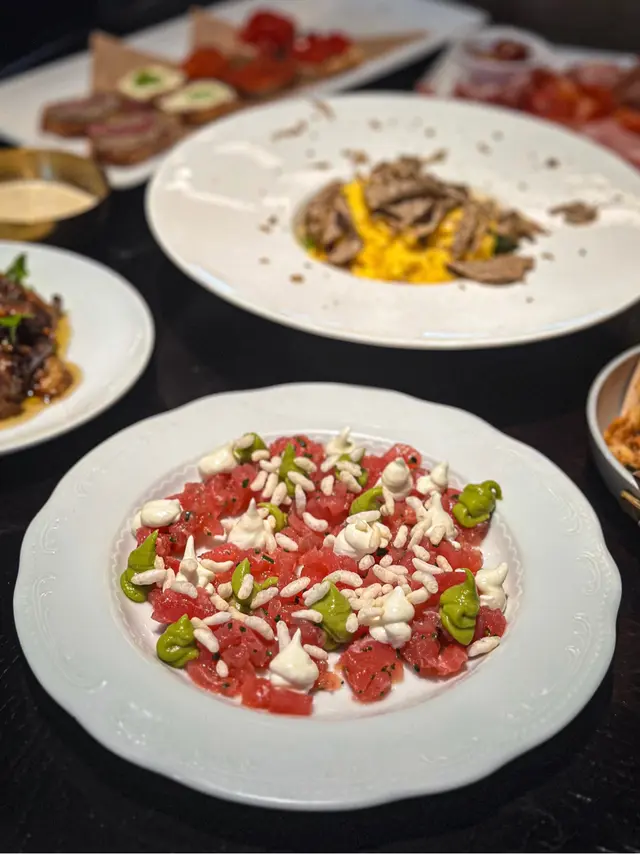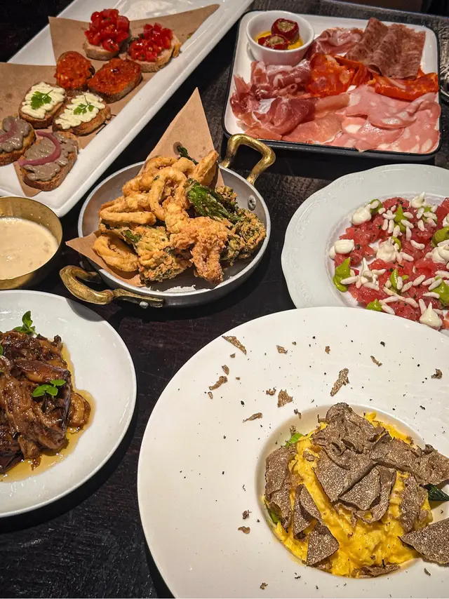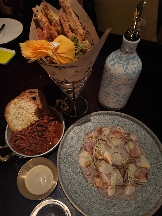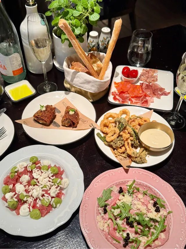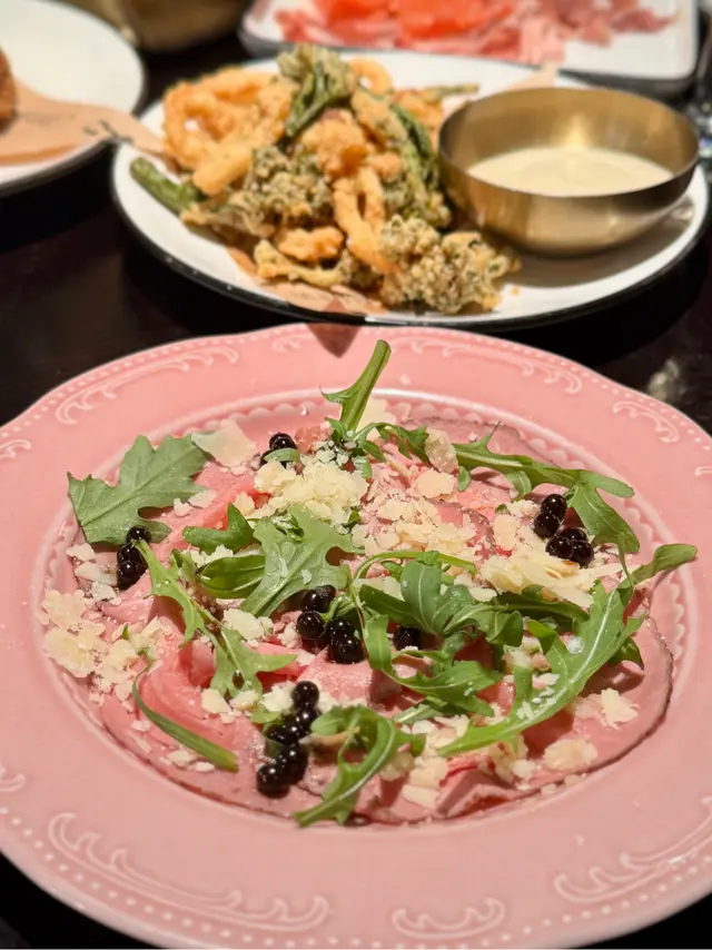 今年生日慶祝,好姊妹安排左一直想試既打卡able意大利菜,本身已經好鍾意大館個vibes,加埋歐洲宮廷式嘅裝修,波波吊燈點綴,好典雅,有外國氛圍。2 courses $4583 courses $5284 courses $598麵包🥖籃,有我至愛既foccaccia,配埋黑醋橄欖油,開胃!⟢ Starters ⟣𖡄意式吞拿魚醬小牛肉 - 意大利經典signature starter,全晚最好味~𖡄小八爪魚🐙配辣茄醬 - 正常發揮𖡄炸蝦炸魷魚 - 淋左,同埋魷魚好韌,反而係炸西蘭花最好食⟢ Main / pasta ⟣𖡄蜆肉扁意粉 - 偏咸,同好油,非常失望𖡄澳洲和牛肉眼 𖠅- medium well都好淋,不過唔知點解有少少粉粉地𖡄意式焗千層茄子 - 手工嘢,主菜中覺得係最好食⟢ Desserts ⟣𖡄意大利芝士餅 - 網上好多人推介,侍應會即時製作,好打卡able~ 味道都不錯,但咖啡味略為濃,令到餅底太濕,可能雪凍啲會好味啲~𖡄西西里開心果卷心脆餅 - 都係意式經典,不錯環境舒服,適合同朋友傾偈,待應都好殷勤有禮,不過食物質素一般。(明明係Aqua同集團)…查看更多