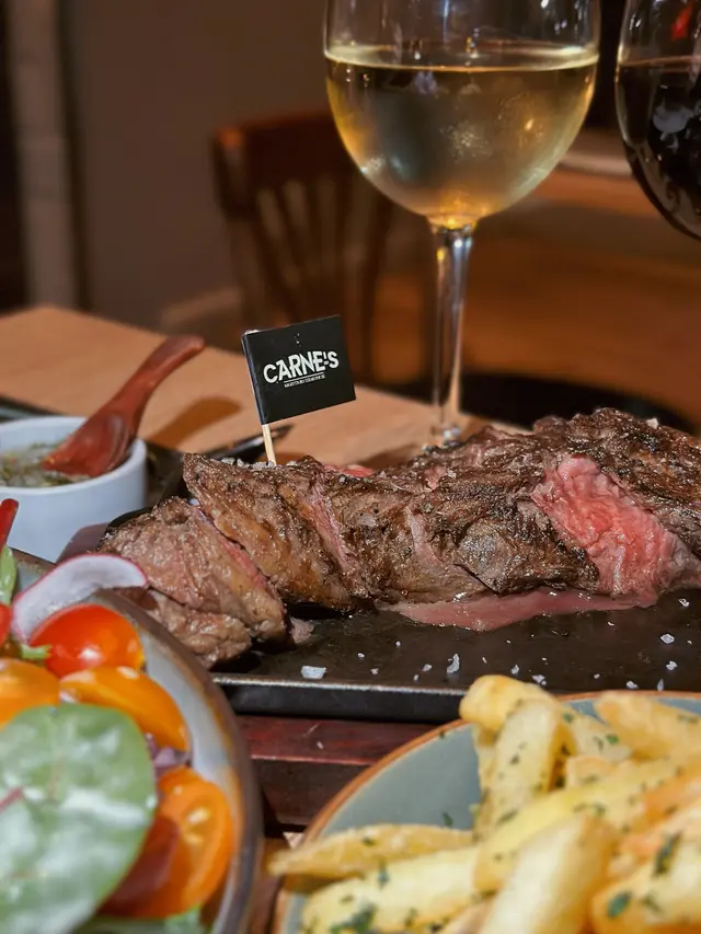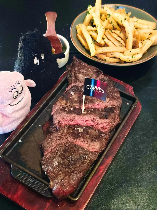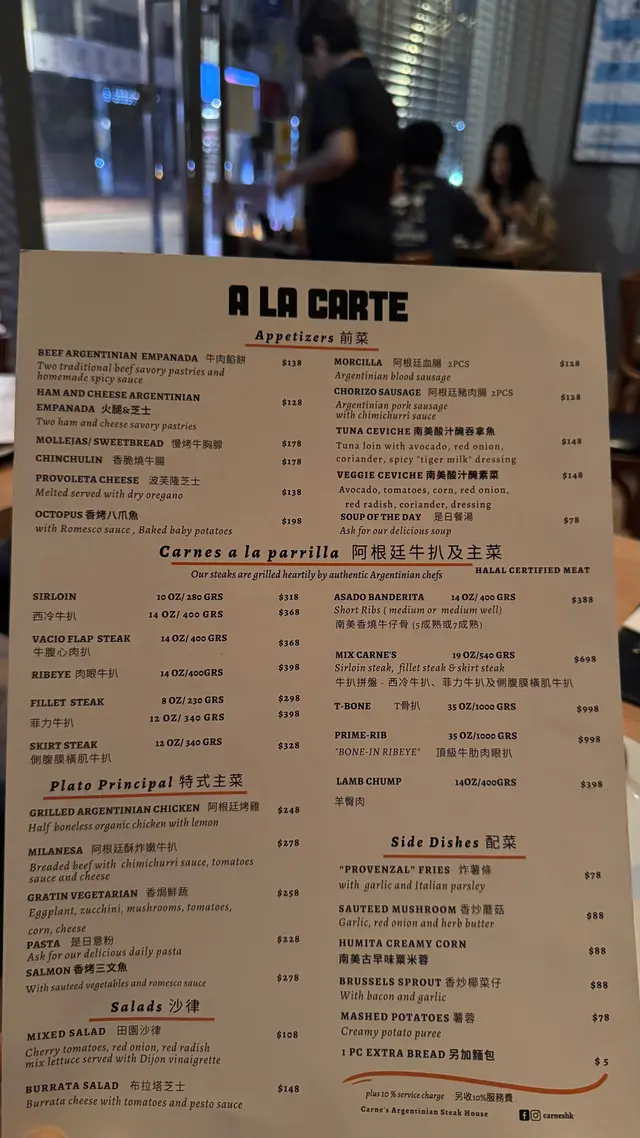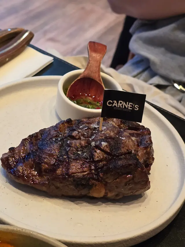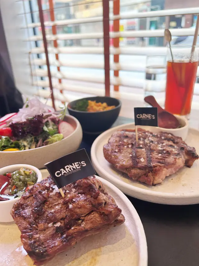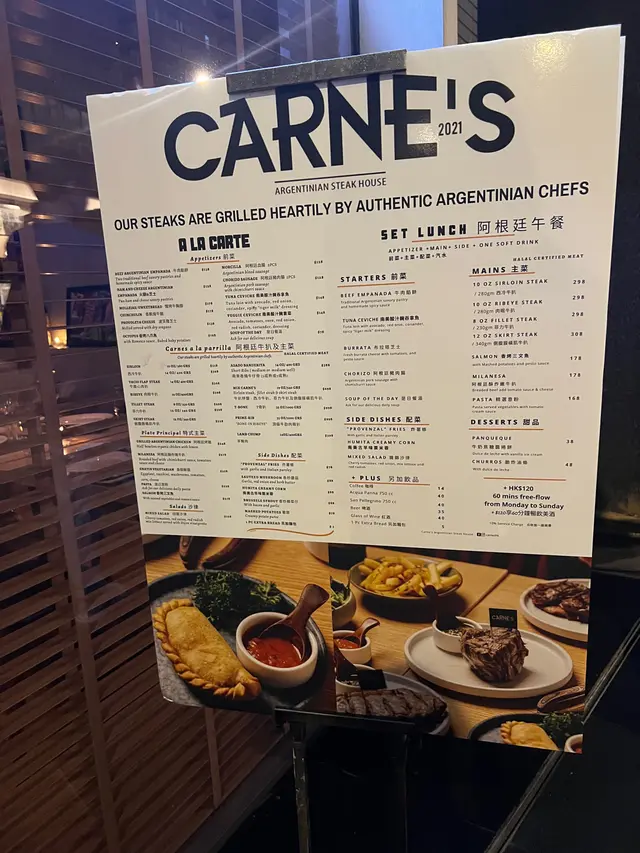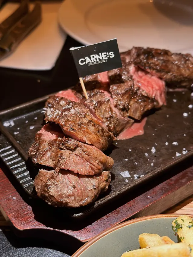 放工同朋友食餐好,一於就去中上環呢度揀間扒房試吓,留意到有間好有格調嘅餐廳可以燭光晚餐!坐低嘅時候毫無頭緒,但係見到隔籬食緊嘅野都幾吸引,於是即刻跟住嗌!首先叫咗個蕃茄水牛芝士沙律以及一個檸檬醃吞拿魚開開胃先。水牛芝士好特別,可以將佢切開等鮮奶油流出 再同其他沙律菜蕃茄等食材攪拌而成,中間亦都沾上咗一啲調味料令成件事更具風味呢。另外,冇諗過生醃嘅吞拿魚加入切碎的洋蔥、辣椒、香菜、鹽等,感覺仍然如此新鮮,份量多夠晒我同朋友一齊享用。Carnes’s 字面上係解牛,當然就梗係要叫返佢哋嘅重頭戲!西冷即將登場,果然好嘅食材唔需要特別去處理,只係加上少許嘅蔥油作調味就可以品嚐到口感極其細嫩,幾乎冇脂肪而且味道相當入味的西冷牛肉。西冷係位於牛後腰脊肉,特色是肉味濃郁,通常帶有一條邊緣脂肪,肉質結實有嚼勁。肉質和脂肪比例在煎烤時能帶來豐富的牛肉風味,啱晒鍾意食肉嘅食客!如果仲想食多啲菜,不妨叫多個雜菜沙律添又唔同嘅蔬菜,包括一般沙律菜、火箭菜、洋蔥同蕃茄仔等,營養價值高且豐富呢。After work, I decided to have dinner with friends and head to a steakhouse in Central and Sheung Wan. I noticed a stylish restaurant that offered candlelight dinners! I was a bit lost when we sat down, but the food next door looked appealing, so I immediately ordered! First, I ordered a tomato and buffalo mozzarella salad and a lemon-marinated tuna to whet my appetite. The buffalo mozzarella was unique; you cut it open to let the cream flow out before mixing it with other salad greens, tomatoes, and other ingredients. It was also coated with some seasoning, making it even more flavorful. I didn't expect the raw marinated tuna to be so fresh, even with chopped onions, chili peppers, cilantro, and salt. The portion was generous enough for my friend and me to enjoy together.Carnes's literally means "butchering beef," so of course we have to order their main attraction! The sirloin is about to make its appearance. Good ingredients don't need special preparation; just a touch of scallion oil is enough to enjoy the incredibly tender, almost fat-free, and flavorful sirloin beef. Sirloin is located on the back loin of the cow, characterized by its rich flavor, usually with a strip of fat along the edge, and a firm, chewy texture. The perfect ratio of meat to fat during grilling brings out a rich beef flavor, just right for meat lovers!If you'd like to eat more vegetables, you might want to order a mixed vegetable salad with different kinds of vegetables, including regular salad greens, purslane, onions, and baby tomatoes, which are all highly nutritious and varied.…查看更多