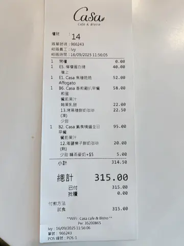 🌊馬鞍山海景Cafe Casa Cafe & Bistro|無加一良心小店!Egg Benedict×焦糖脆脆Latte超滿足💫 坐落喺馬鞍山海濱長廊旁邊,落地玻璃望到開揚海景,陽光透入嚟好舒服🌞。店內佈置走簡約文青風,播住輕音樂,假日過嚟食個brunch真係好chill~Egg Benedict配Sourdough流心蛋一切開蛋汁即刻湧出嚟💦,荷蘭醬調得濃滑唔膩,底層嘅Sourdough烘到外脆內韌,夾住煙燻三文魚一齊食,鹹香同蛋香完美融合!黑松露Parma Ham Sourdough黑松露醬香氣超濃郁🍄,Parma火腿鹹度適中,簡單但好好食!旁邊嘅沙律菜新鮮,油醋汁開胃解膩🥗。自製乳酪杯乳酪順滑唔酸,加入蜂蜜同穀物,口感豐富,作為brunch結尾好清爽🍯。☕ 飲品驚喜焦糖脆脆Latte(半價升級)面層焦糖脆脆鋪到滿🍮,飲落有焦糖嘅香甜脆口,咖啡醇厚唔苦,撈勻飲冰熱交融好過癮!一坐低免費送嘅 welcome drink🍎,冰涼清甜,即叫即榨冇加糖,好有誠意~🍋 檸檬撻撻皮牛油香濃,檸檬餡酸甜平衡🍋,面頭炙燒過的蛋白霜輕盈唔膩,食完成個口腔好清新!Casa Cafe & BistroMa On Shan, On Chun St, 29號海澄軒地下4號舖…查看更多
