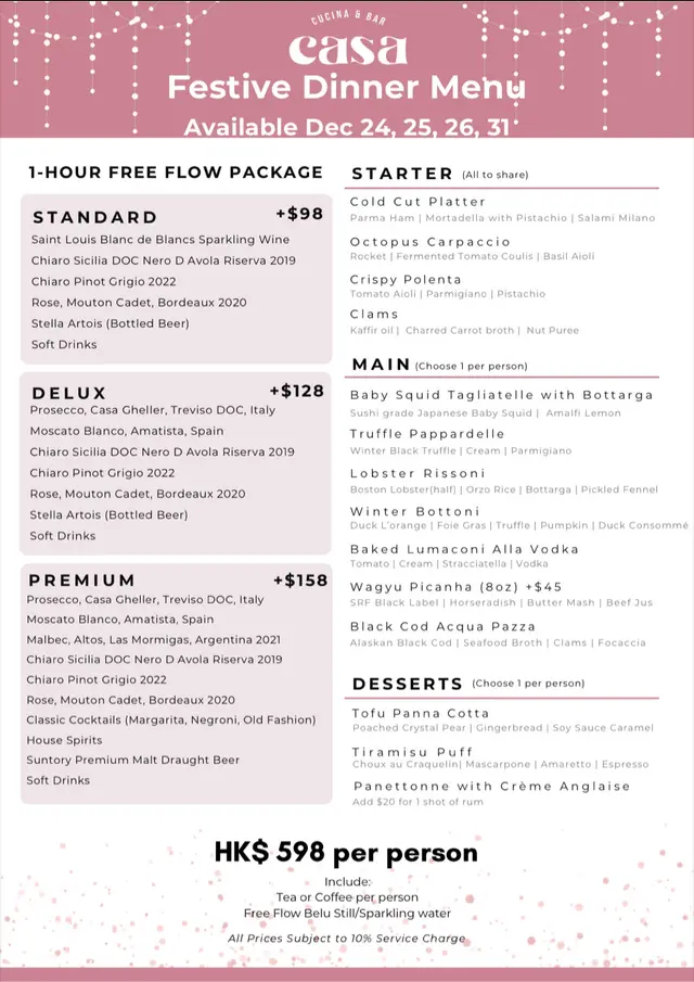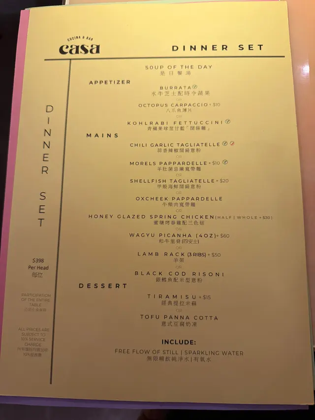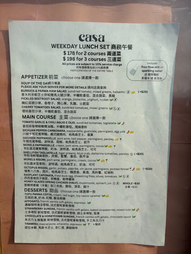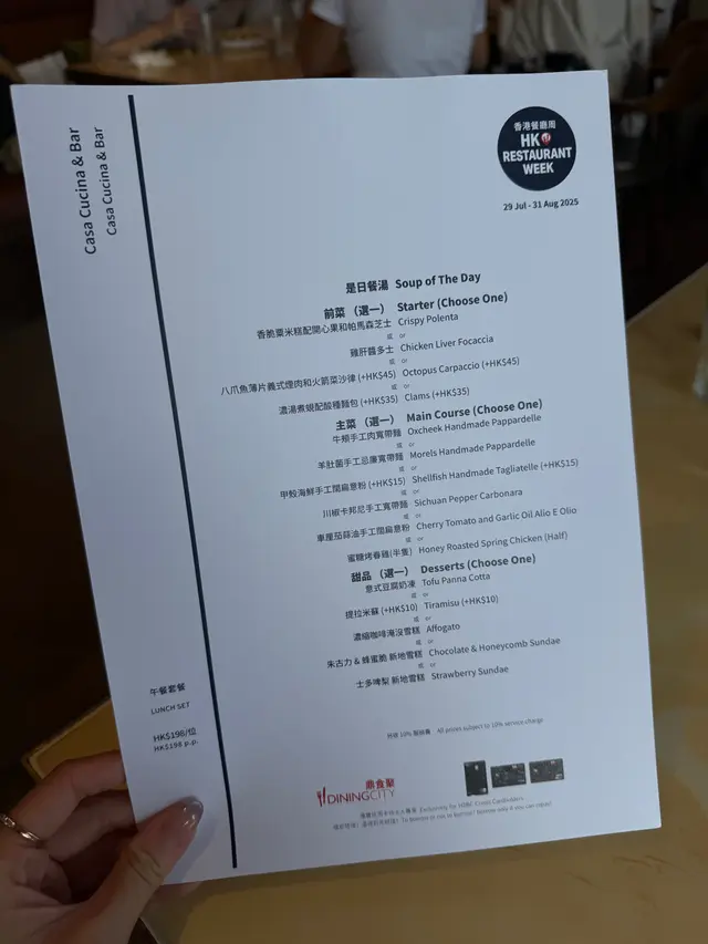 Casa Cucina (銅鑼灣) 網上訂座即賺Rice Dollars 網址: https://s.openrice.com/QrbS0RFiC00 地址: 香港銅鑼灣百德新街59-65號Fashion Walk地下C及D號舖 電話: +852 21520556