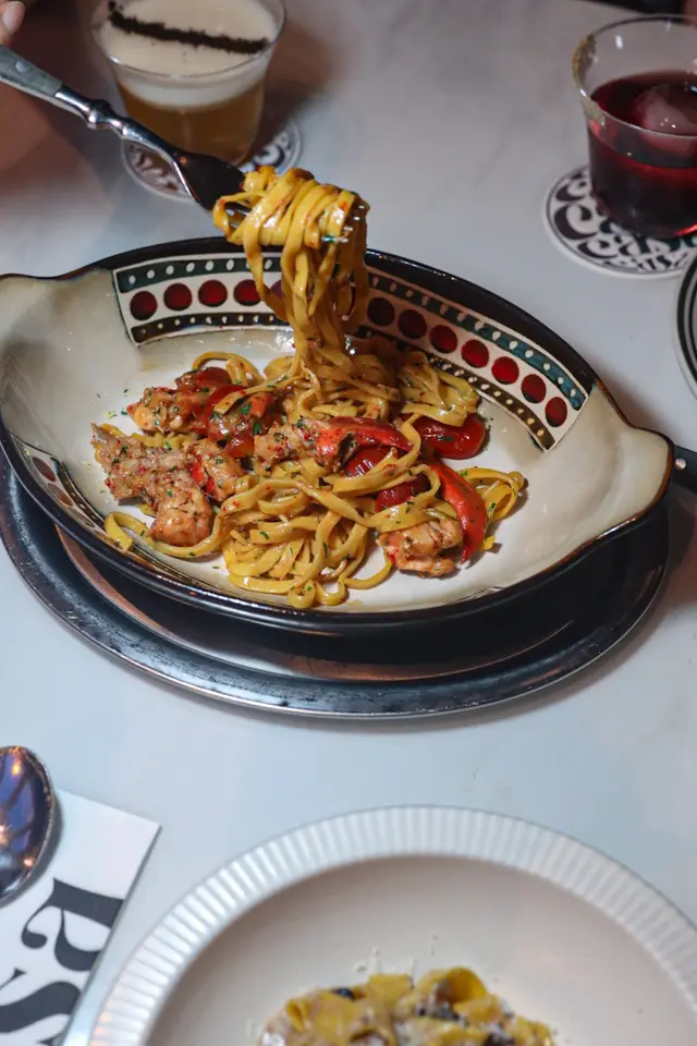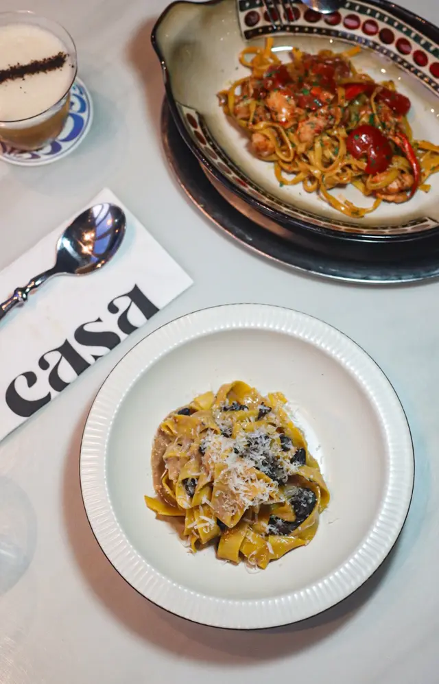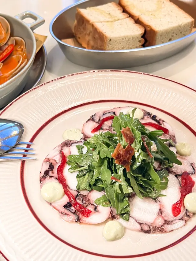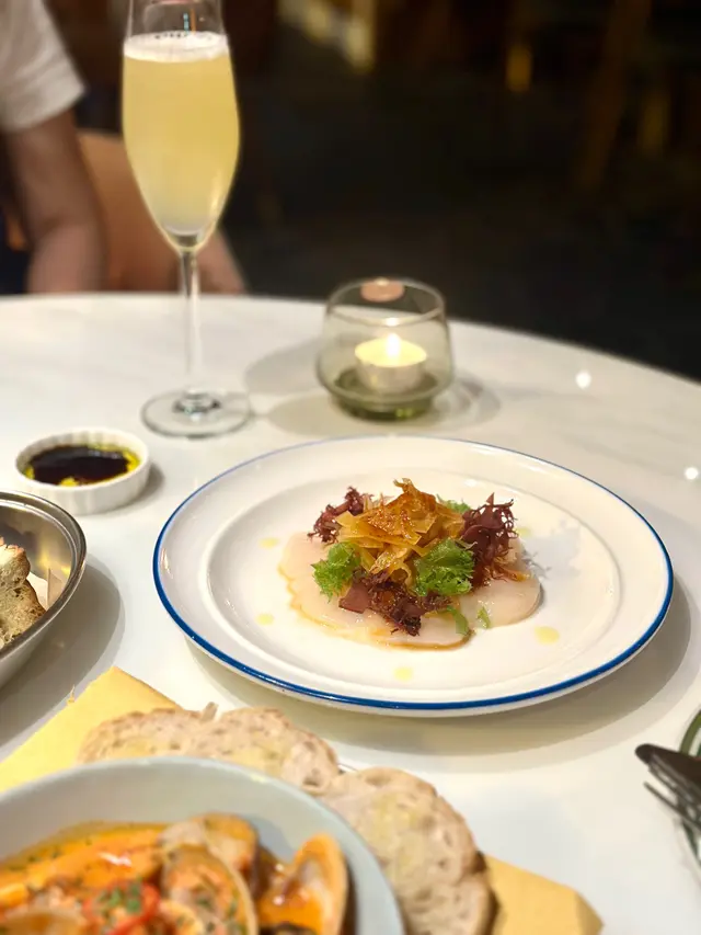 由西環轉戰到銅鑼灣最好食的還是手工製意粉!Tagliatelle 蛋香味十足,而且龍蝦汁超濃郁❤️🔥秋冬新Menu 的 Autumn Bottoni 夠打卡特別🧡餡料是南瓜&菇菌🎃🍄🟫點 Pasta 都是不會出錯的 *ଘ(੭*ˊᵕˋ)੭* ੈ✩‧₊˚前菜較推薦 octopus carpaccio Black cod 最適合配上一杯白酒🍷酒類$80-$100,價錢相對上合理~Tofu panna cotta 是暫時食過最好食的豆腐奶凍! 配上紅糖和大豆焦糖醬 💝朋友都大讚好食🥰裝潢是粉紅色少女,窗外是海景!夠幸運是可以看到日落🌇✨朋友聚餐不失為一個好選擇💘OCTOPUS CARPACCIOBasil Aioli | Fermented Tomato Coulis | Baked PancettaBURRATAStrawberry | Ameretto | Nut MixAUTUMN BOTTONIPumpkin Stuffing | Mushroom Stuffing | Truffle Consommé SHELLFISH TAGLIATELLETiger Prawns | Blue Crab | Datterino TomatoesHONEY GLAZED CHICKENItalian Spring Chicken | Chicken Jus | Assorted MushroomBLACK COD RISONIAlaskan Black Cod | Orzo rice | Bottarga | Picked FennelTIRAMISUMascarpone| Amaretto | EspressoTOFU PANNA COTTACream | Red Sugar | Soy Caramel…查看更多
