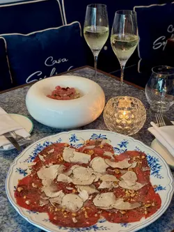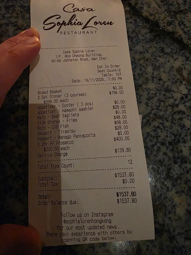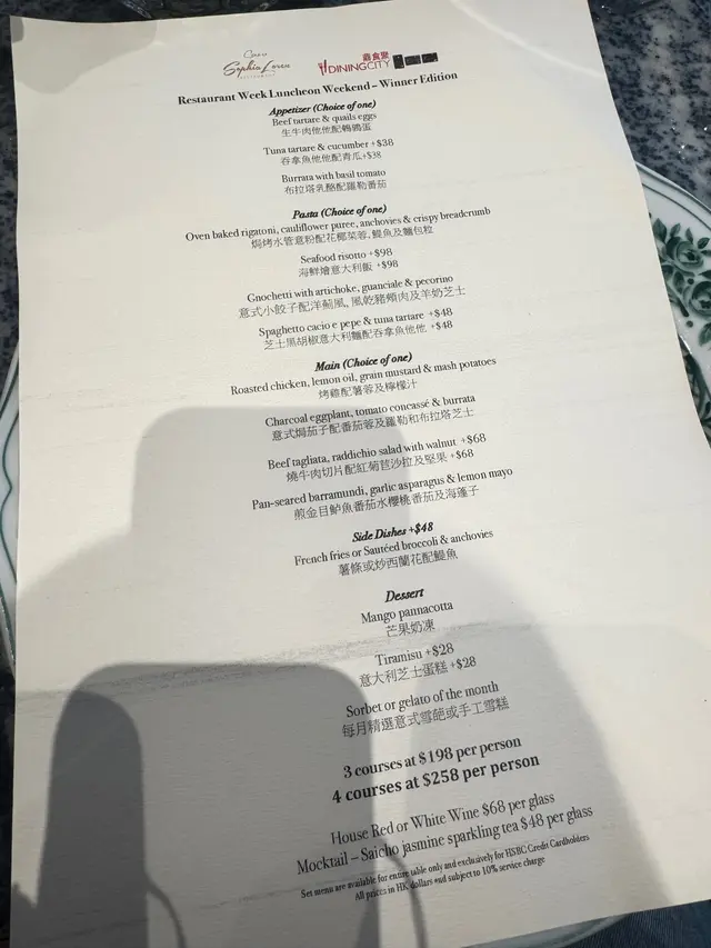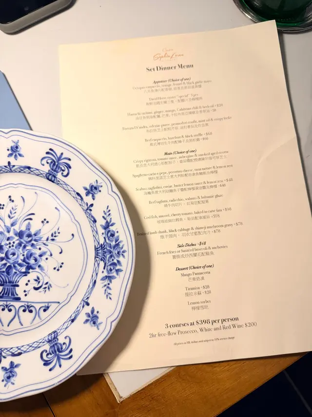 位於灣仔的意大利餐廳。提起灣仔,不得不提那幢擁有逾百年歷史的『和昌大押』,而這間餐廳就正正坐落於這幢老建築內,將傳統與現代完美融合;活化翻新後,古老唐樓充滿時代感,與繁華的灣仔街道形成鮮明又和諧的對比。.有名你叫,餐廳設計靈感源自傳奇影星ꜱᴏᴘʜɪᴀ ʟᴏʀᴇɴ,藍白主調環境舒適,風格時尚而不失格調,極具特色打卡位;而室外則是懷舊騎樓,半露天座位可一邊眺望灣仔城市景色,一邊用餐,氣氛更為浪漫有特色。⋆_____3-ᴄᴏᴜʀꜱᴇꜱ ᴅɪɴɴᴇʀ ꜱᴇᴛ $398/PP______⋆✿ ᴀᴘᴘᴇᴛɪᴢᴇʀ♡ 油甘魚刺身 +$28♡ 新鮮法國生蠔三隻前菜分別選擇油甘魚刺身及法國生蠔。油甘魚配上清爽的芒果和薑片,帶來鮮甜與微辣的層次感;法國生蠔雖然不算太大隻,但鮮味十足,肉質肥潤鮮美。.✿ ᴍᴀɪɴ ♡ 玻璃紙焗白鱈魚 +$98♡ 燒牛肉切片上菜後店員會在桌前剪開玻璃紙,白鱈魚就包裹在透明的紙包中,透過焗烤後,魚肉鎖住鮮味,嫩滑多汁。而燒牛肉切片份量十足,牛肉粉嫩且肉味濃郁;搭配紅菊苣和堅果,口感層次豐富。.✿ ꜱɪᴅᴇ ᴅɪꜱʜᴇꜱ: ꜰʀᴇɴᴄʜ ꜰʀɪᴇꜱ +$48.✿ ᴅᴇꜱꜱᴇʀᴛ:♡ ᴍᴀɴɢᴏ ᴘᴀɴɴᴀᴄᴏᴛᴛᴀ♡ ᴛɪʀᴀᴍɪꜱᴜ +$28甜品比想像中出色。芒果奶凍入口滑溜,有明顯奶香但不會太膩,芒果味清新自然。提拉米蘇層次分明,忌廉幼滑,咖啡酒味突出,整體口感鬆軟,值得加錢一試。.✿ 2ʜʀꜱ ꜰʀᴇᴇ-ꜰʟᴏᴡ ᴘʀᴏꜱᴇᴄᴄᴏ, ᴡʜɪᴛᴇ & ʀᴇᴅ ᴡɪɴᴇ +$200在這個超適合嘆酒約會的環境,ꜰʀᴇᴇ-ꜰʟᴏᴡ任飲至回本是常識吧?…查看更多
