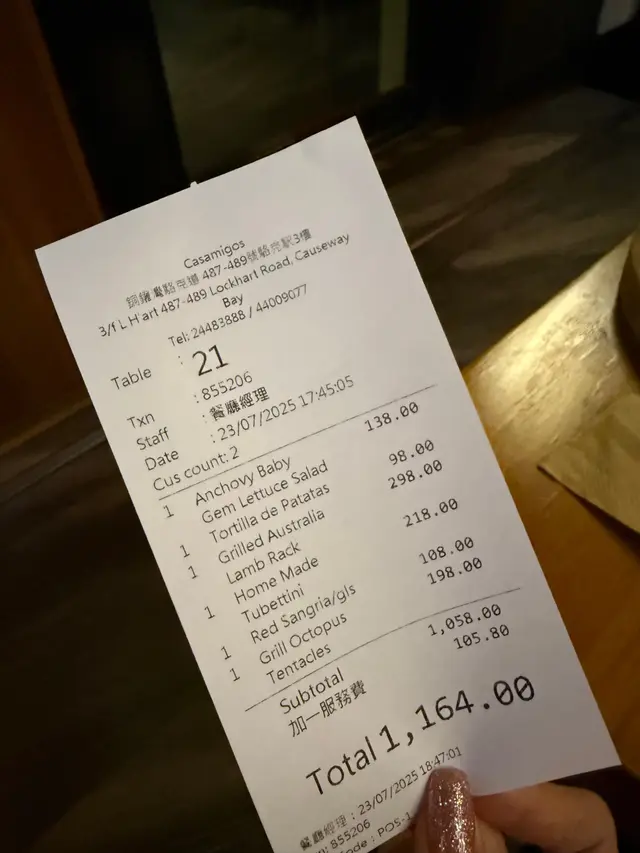 銅鑼灣「Casamigos」真係我心目中嘅Top 1西班牙菜餐廳,菜式精緻,出品又高質,服務都不錯。*此餐廳收取全單10%服務費。龍蝦尾西班牙海鮮飯(單點$586),龍蝦尾好大隻,肉質厚肉,口感爽彈,食落啖啖肉,雖然略嫌需要額外支付$288加配,但龍蝦出肉量多,為坊間其他龍蝦菜式出肉量的2-3倍;大蝦肉質爽口,食落好新鮮;青口、沙白食落好Juicy,味道鮮甜;飯底食落充滿蝦湯、番紅花味道,底部更有飯焦,配以檸檬汁、沙律醬、細蔥食用,味道清新。北海道帶子刺身(單點$148),表面鋪有細蔥,帶子刺身已切片,肉質嫩滑,配以三文魚籽、黑魚籽食用,三重鮮味享受,加上配搭香橙、日本麻油柚子醋,味道更佳。西班牙薯仔蛋餅(單點$98),表面鋪有細蔥、蛋黃醬、辣味卡津粉,蛋餅口感厚身,食落蛋香味濃,內有炒馬鈴薯絲、炒洋蔥絲,味道清甜。香煎鵝肝多士配甜酸青瓜柚子莎莎(單點$78),鵝肝肉質半生熟,食落入口即化,配以青瓜柚子莎莎、蛋黃醬、食用花、細蔥、多士食用,可以中和油膩感。辣味卡津薯條(單點$78),粗切薯條即叫即炸,口感香脆,配以辣味卡津粉、蛋黃醬、細蔥食用,味道微辣,愛辣之人可能對此菜式稍有失望。巴斯克蛋糕(單點$98),表面鋪有草莓、藍莓、糖粉,原味流心巴斯克芝士蛋糕,外層食落帶點微微焦香味道,蛋糕口感綿密,芝士味道濃郁,配以流心餡料食用,口感濕潤,出品媲美坊間專門店。@casamigos_hk Casamigos地址:香港銅鑼灣駱克道487-489號駱克駅3樓…查看更多