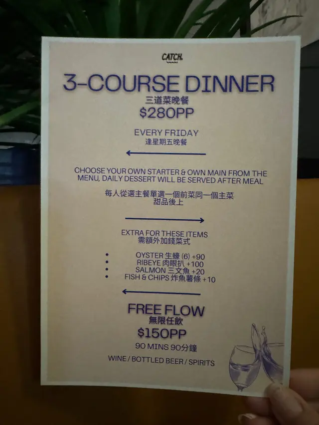 🍽️食物方面: 🍟Fish & Chips 💲200魚勁鹹 幼薯條加返分🥚Dirty Egg💲170Hea 唔值 成件事唔夾 幾漏配牛油果 辣肉腸 細粒薯寶🥗Salad 🆓青蘋果好酸 nuts幾好食🍊Juice💲35本身揀西瓜 Staff落錯單橙汁遮咗芒果同百香果嘅味🍋🟩Lime Soda🆓 正常發揮📷打卡方面:光線充足 用QR payment🔈環境方面: 有啲逼 好嘈 傾唔到計💬其他資訊:Catch. 📍鰂魚涌海灣街17-21號海灣大廈地舖💰收+1…查看更多