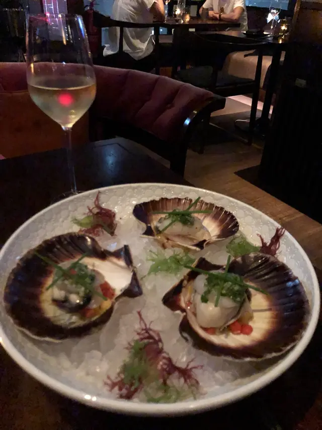 近聖誕,總有派對會動有機會參加機會難得到訪中環星級酒吧餐廳派對分三層,亞州菜,25樓是休閒廳 25樓走樓梯上頂級天台露台,有無敵景觀日夜都美絕,壯麗香港風景映入眼中冬天無雲,天氣清澈飲返杯香檳,吃一下精緻美點小吃烤肉串燒,肉質夠嫩滑帶少少油香夠肥美,肉汁夠多也有素食之選,烤蔬菜,有瓜片,番茄仔,咬起來夠新鮮帶子兩吃,包炸漿炸脆,匙底下有特色醬汁伴埋,外脆內嫩,只係略為細粒一點帶子刺身配醬汁,醬汁係帶酸,做前菜,似落了醋,幾開胃,帶子也有不一樣的配搭味道一個好岩一大班人開派對既好地方!中環蘭桂坊德己立街30-32號加州大廈25樓…查看更多