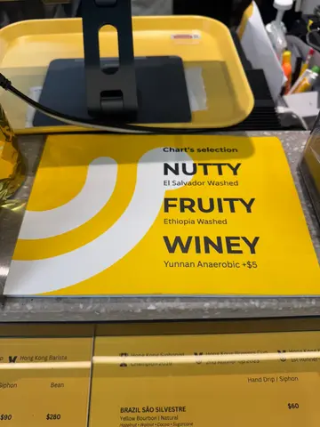 約咗人又未夠鐘,想搵個地方坐下,就行過嚟中環街市呢間Chart Coffee飲杯咖啡。咖啡豆有三款選擇(Nutty/ Fruit/ Winey),今次揀咗Nutty (El Salvador washed)。咖啡選擇都唔少,淨係有汽嘅咖啡都有espresso tonic/soda/cola。今次飲返我最愛嘅espresso tonic,入口清爽,咖啡香氣同氣泡感融合得唔錯,咁熱嘅天氣飲就啱晒。咖啡味道平衡,唔會過酸或過苦。價格亦合理($45),以中環地段嚟講性價比唔錯。總括而言,咖啡品質穩定,出品速度快,環境唔算舒適但勝在方便,適合上班族或者行街途中補給。…查看更多