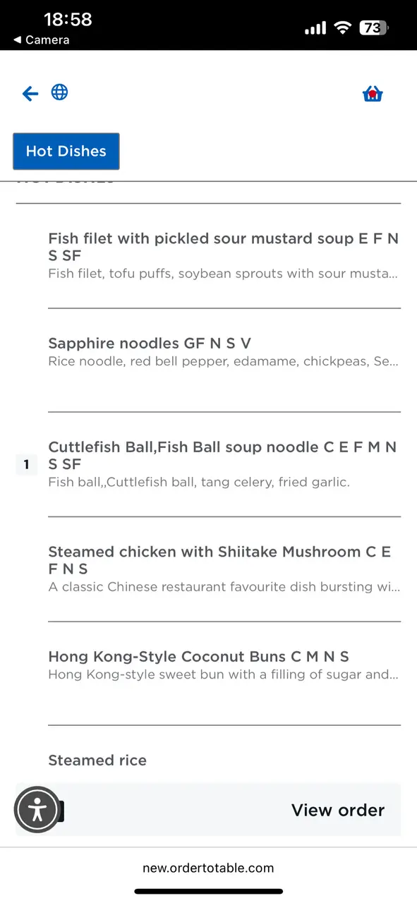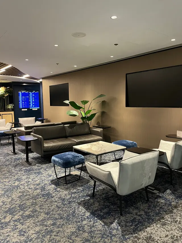 。自助食物區附近嘅散座最多人坐。冷盤可選水果、沙律、芝士、凍肉、糕點、三文治、乾果、越式米紙卷、日式冷麵等。熱食有中式老火湯、西湯、意粉、燴肉等,不過最好食嘅係可以網上點餐嗰幾款。美國Chase銀行於香港國際機場所設之貴賓室「Chase Sapphire Lounge by the Club」地方大就幾大,不過就唔係幾夠位坐,自助餐飲質量平庸,面黑黑嘅服務生又唔多似歡迎旅客到臨