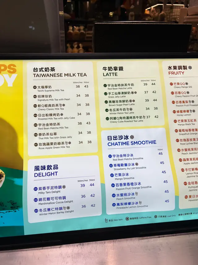 Chatime (中環) 網址: https://s.openrice.com/QrbS0BWy6W0 地址: 香港中環皇后大道中93號中環街市地下G08號舖 電話: +852 53660068