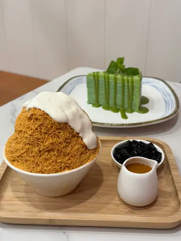 🇹🇭沙田新城市廣場的泰式fusion餐廳「ChaTraMue Cafe」以半開放式設計,配藤編吊燈、綠色植物等,氛圍十分悠閒,充滿泰式田園感🌾主食🍕泰式冬蔭海鮮薄餅薄餅底十分煙韌,拉絲芝士仲冒住煙,微微酸辣嘅冬蔭功醬惹味醒胃,混合蝦和魷魚,口感潤澤唔會乾柴🍝泰式香葉魷魚意粉以香茅、檸檬葉、辣椒同泰式basil炒成嘅醬汁,魷魚爽彈,辣度都幾明顯,泰過癮了甜品🍰 泰國綠奶茶千層蛋糕層層分明,綠奶茶奶油好細滑幼嫩,每口滲透淡淡茉莉花清香🥞泰茶梳乎厘班戟即叫即做,口感綿密紮實,帶泰式奶茶醬和焦糖脆脆飲品🧋泰國斑蘭珍珠咖啡鮮奶充滿東南亞風情嘅特調咖啡,斑蘭香氣和咖啡出奇地夾,煙韌珍珠有咬口🥤泰國青檸荔枝蜜玫瑰花茶 味道好清新,青檸同荔枝蜜嘅甜酸平衡得幾好,帶住淡淡玫瑰花香,但注意是排毒瀉茶系列👻(All subject to 10% service charge)📍ChaTraMue Cafe沙田沙田正街2-8號新城市廣場三期3樓A327號舖(港鐵沙田站 A3 出口)…查看更多