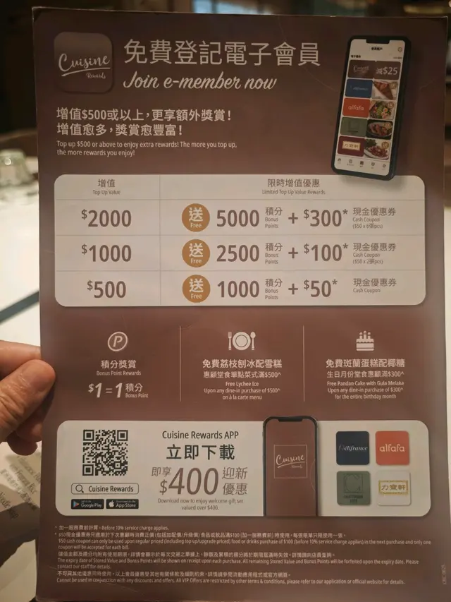 大圍圍方三樓的 Chatterbox Café,專注於呈現正宗新加坡滋味,環境舒適,座位寬敞,不論係閒聊定慶祝,都係不錯選擇。參巴辣椒炒通菜($72) 是期間限定食品,通菜炒得火喉足,爽口不老,參巴辣椒香濃微辣,辣味中滲出蝦醬香,提升整道菜嘅層次感。睇似簡單,食落卻有驚喜。星洲海鮮炒貴刁($128) 炒得乾身帶鑊氣,麵條煙韌不黏,仲加入蝦仁、帶子同臘腸,鹹香鮮甜互相交融,臘腸更添港式風味,融合得恰到好處。豉油辣椒一上場,更令人忍唔住舀第二啖。香脆腐皮卷($68) 一口咬下只有腐皮,但炸得酥脆,冇餡反而突顯腐皮香氣同油香,口感單純得嚟唔寡,係嗌嚟伴酒或者當小食都非常稱職。另外有Cuisine Rewards 計劃,免費登記,即可享有總值超過 $400 嘅迎新優惠。今餐體驗令人滿意,每道菜都見到心思。對新加坡菜有興趣,又鍾意有少少fusion感嘅朋友,不妨一試!…查看更多