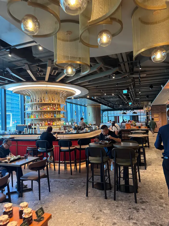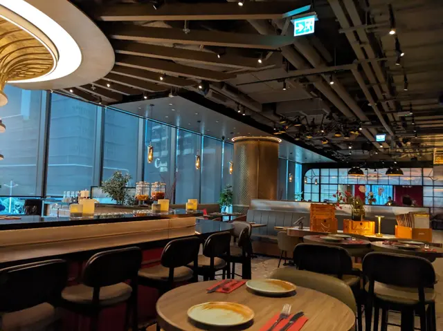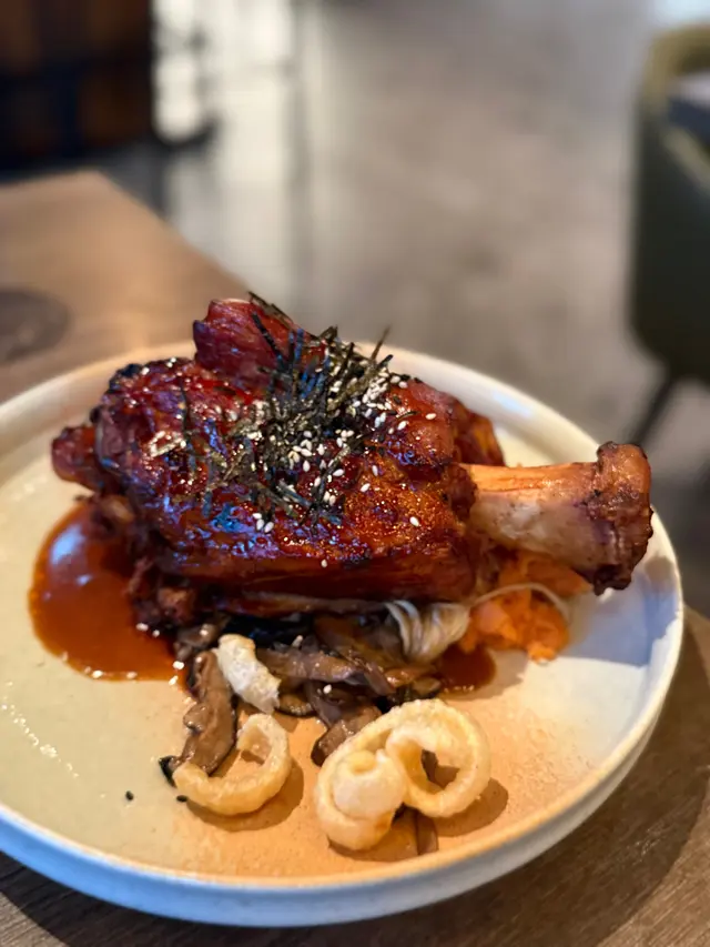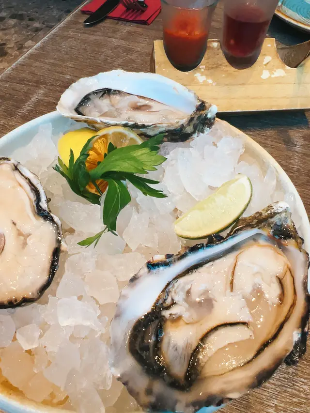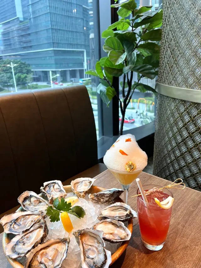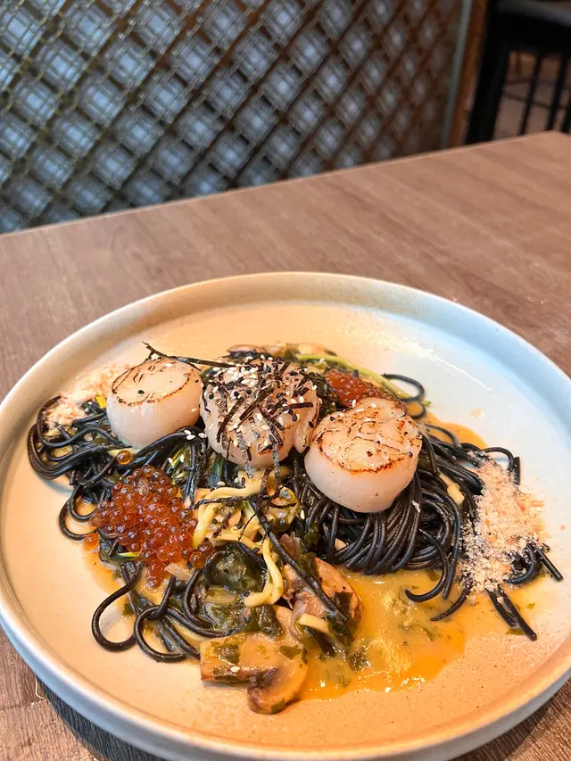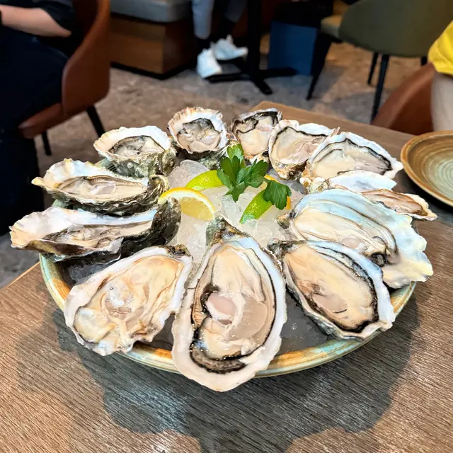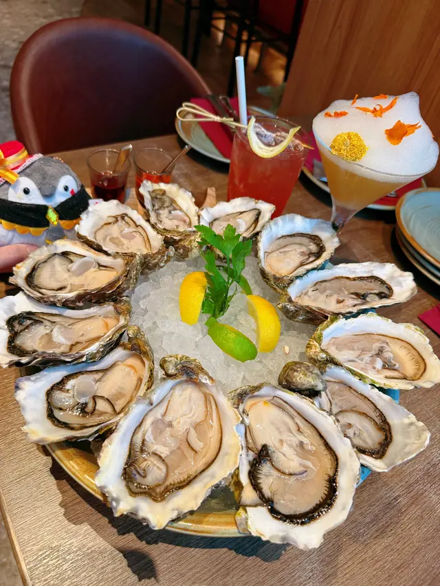 啟德地方真大,約朋友一齊逛完後來餐廳食晚飯。餐廳很大,近門口有商品及精緻麵包,每款都望下,色彩繽紛; 餐廳有酒吧區、生蠔專櫃、存放肉類待熟成的大櫃等,目不暇給,觀感及印象不錯!坐好後討論究竟是主戰生蠔飲啤酒還是食薄餅,有共識後選擇肉食,當然要食沙律再食肉!Smoked Salmon & Prawn Salad 煙三文魚海蝦半熟蛋沙律 $168聞到幾香水果味及少少酸味,酸味是來自沙律汁,材料豐富,幾款蔬菜、蕃茄、煙三文魚、海蝦、水果等,酸酸甜甜幾開胃。Happy hour 時段有八折優惠,想飲百香果,揀一杯Mocktail Peachy Passion 桃紅莓百香果 $76 顏色很美,無鮮明果味 ,凍飲亦太多冰,令味道極淡,感覺價格與品質不符!Super Food Salad 藜麥藍莓杞子牛油果羽衣甘藍沙律 $148沙律同樣材料豐富,有牛油果、羽衣甘藍、藍莓、黑橄欖、芝士及很多很多藜麥等,食得健康又開心!Vegetarian Coca Bread Pizza 素菜西班牙薄餅 $158薄餅賣相很美,尤其芝士碎有點似飄雪,又有蕃茄、茄子、洋薊等。餐牌註明有牛油果醬但較難食出牛油果醬味道,咬落幾juicy,薄餅餅底好薄,餅底與餅邊很脆,如法包般的脆,是食過最脆的薄餅喔!Roasted Suckling Pig 烤乳豬配紅甜椒堅果醬水欖車厘茄薯仔 $288烤乳豬有陣陣飄香,幾大件,乳豬皮好薄,一邊切一邊聽到乳豬皮的爆裂聲,乳豬有油香有味道,一致評為好好食!進餐期間侍應們不停更換餐碟,每一位侍應都是笑容燦爛,讓我們食得舒適!Pork Tomahawk 慢煮黑豚斧頭扒蘋果青醬酸忌廉薯仔 $268配菜同樣有薯仔,薯仔混入酸忌廉好食又夠腍。黑豚斧頭扒較乾身,有咬口不夠腍。蘋果青醬多一點會較好,配菜薯仔被評為最好食。Scallops Ink Spaghetti 北海道帶子海膽醬墨汁意大利麵 $198食材有帶子、三文魚籽、紫菜絲、菇、黑白芝蔴等,意大利麵軟硬口感佳,雖然海膽醬的味道不太突出,但食材混合好後非常鮮美,意外好食!Augus Ribeye 乾式熟成黑安格斯肉眼扒薯條什菇香草牛油 600克 $628好大件肉眼扒,烤紋好美,薯條香脆好食,乾式熟成黑安格斯肉眼沒有太多肉汁,所以香草牛油是必須的。較生的位置較難咬開,幸好肉眼扒大部份都是較腍,牛味濃郁好食,乾式熟成確實與別不同!各款菜餚精緻,賣相及品質上好,六人分享多份主食剛好,烤乳豬和乾式熟成黑安格斯肉眼扒一致評為最好食,再加上更換餐碟的侍應以致結賬的服務員態度親切及笑容燦爛,是少有的極佳體驗,超讚!…查看更多