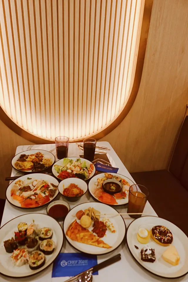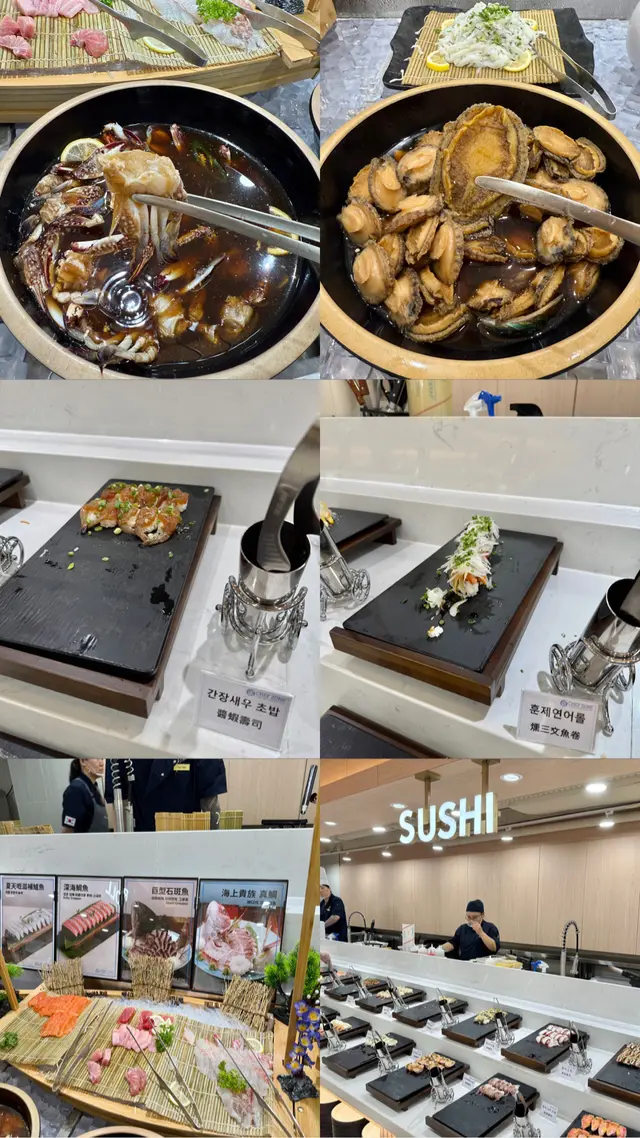 為食嘅你準備好未?Chef Zone呢間由韓國廚師團隊主理嘅自助餐,真係可以話係「韓食迷」嘅天堂!餐廳有成16個美食專區、超過150款食物,絕對係花多眼亂。等我同你詳細導航一下啦!區域 重點美食🦀 醬油海鮮區: 醬油蟹、醬油鮑魚、醬油蝦🍣 壽司與刺身區 :50多款迷你壽司/軍艦/卷物、刺身🍲 經典韓食熱葷區:人參雞湯、鮑魚湯、燉牛肋排、炒粉絲、泡菜五花肉🍢 街頭小食區 :辣炒年糕、韓式炸雞、魚糕串、多款炸物🍖 燒烤與肉類區 :烤五花肉、韓式烤牛肉、傳統韓國豬手🧇 甜品區 :自製窩夫、韓式雪條、Gelato雪糕、朱古力火鍋🍹 飲品區 汽水、果汁、傳統韓國米酒、咖啡👑 必食精選:· 醬油蟹:雖然有食客指出係公蟹所以冇膏,但亦有食客大讚蟹膏澎湃,蟹肉如啫喱般滑溜,用傳統食法將蟹膏撈落熱飯再加麻油,非常惹味。· 莞島醬鮑魚:來自韓國莞島嘅名產鮑魚,肉質爽彈,醬油醃得恰到好處。· 韓式烤牛肉:採用牛小排部位,預先醃製得甜鹹適中,烤完後肉汁鎖得好好。· 鮑魚粥同人蔘雞湯:超足料超夠火喉!好味到我encore左兩轉!💡 飲食小貼士想喺Chef Zone有最佳體驗,可以參考以下貼士:· 隱藏食法:有食客推薦用芝麻葉代替生菜,包住烤五花肉再加一片烤蒜片,香氣會提升到另一個境界。· 甜品推薦:甜品區有韓國大熱的牛角包窩夫,可以親手製作,再加一球韓國直送雪糕,非常邪惡。· 留意時段:平日午餐價格最為優惠,而且用餐時間更長,部分時段可長達120分鐘。…查看更多