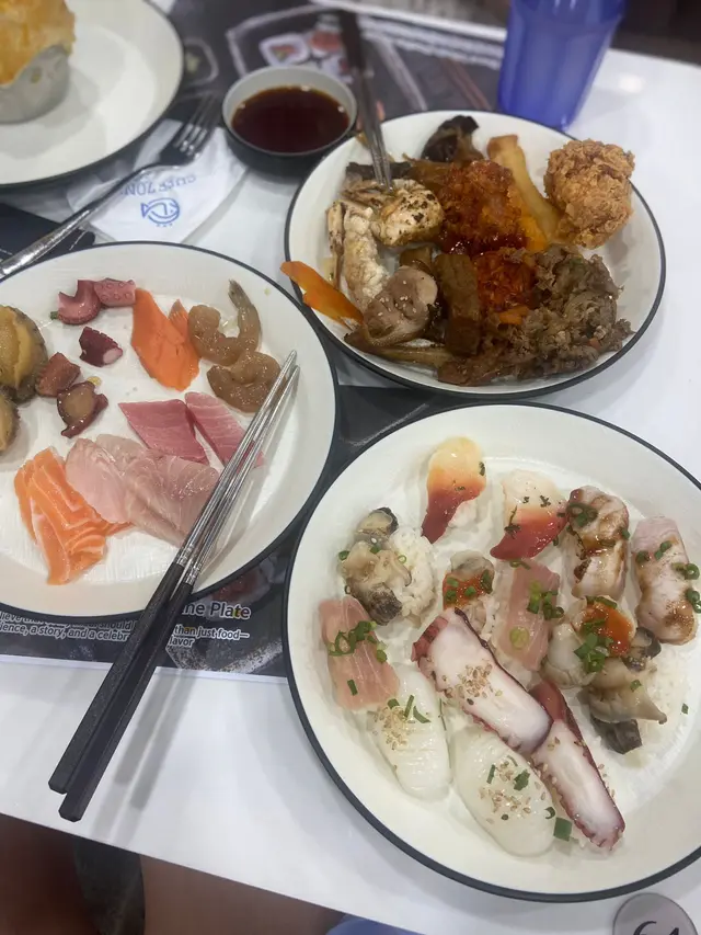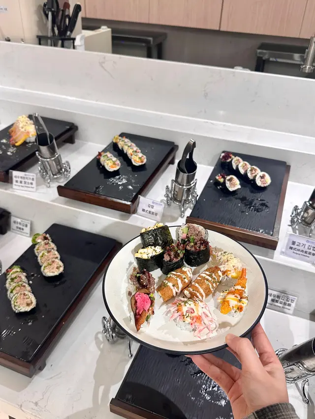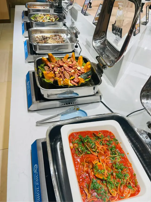 酒店自助餐、日式放題食得多,唔知大家有冇食過韓式自助餐呢?今次同大家介紹,呢間係全港首間韓國自助餐🇰🇷,90%食材及用料來自韓國,超過150款地道韓國美食❣️由韓籍廚師主理,堅持傳統工藝,環境寬敞舒適。食物款式超豐富,平時食得多日本刺身,韓式刺身都係第一次,呢度有滋補鱸魚、海上貴族真鯛、巨型石斑魚、深海鯛魚、比目魚卡爾帕喬、魷魚絲。我覺得比目魚卡爾帕喬都幾開胃,加咗檸檬、洋蔥絲,味道酸酸地。魷魚絲遠睇河粉或冷烏冬,原來係魷魚絲,好得意,食落唔會韌。鍾意食韓式拌飯嘅話,超過10款拌菜小食,可因個人喜好隨意添加小菜。更有韓國直送醬油蟹,蟹肉都幾鮮甜呀。醬油蝦都幾大隻,都好入味呀!食得辣嘅話,可以試下辣味蟹啦。壽司種類好豐富,細細舊飯都幾方便,食材都係以韓式食物為主。有一個corner係即叫即整,我試咗生牛肉粟米,用雪糕筒裝住,都幾特意,有啲似生牛肉他他嘅口感。熟食方面都好豐富,包括炸物、串燒、炸雞、人蔘雞湯、鮑魚粥、酥皮濃湯、魚板串等等。飲返啖人蔘雞湯暖下個胃,人蔘味都幾濃下。最有驚喜係鮑魚粥,口感好似baby food嘅口感,啲粥煲得好綿密,香甜易入口,都幾啱小朋友食呀!甜品方面都幾多選擇,淨係冬甩都有好多隻味!有韓式軟雪糕,估唔到仲有Gelato,有士多啤梨同抹茶味,成個雪櫃都係韓式雪條!!!咁多隻味,超滿足呀!食後感想,呢個價錢幾抵食,食物種類真係幾多下,食完真係捧住個肚走人,而且都坐得幾舒服,都幾啱一班朋友聚會,性價比認真唔錯!…查看更多