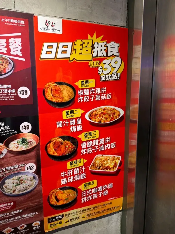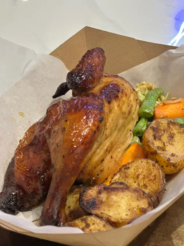 以$59一個午餐,雖然雞未算太滑漏嗰隻,但以這個價錢,也算合理價。整體來說:雞嘅份量有彈性,烤雞全隻、半隻、1/4也可以選擇,見到還有海南雞,配菜隨意配搭,快餐之選的一個好選擇。