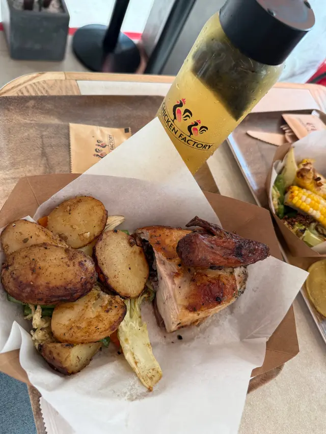 📍位於秀茂坪嘅Chicken Factory🧡鍾意食雞嘅朋友有口福啦🤤呢間係食雞嘅king😆🫅有好多唔同口味嘅雞✨包括百里香、韓式醬油雞等等~~仲要性價比好高🫶🏻我今次就食百里香烤春雞同埋柚子蜂蜜味道嘅烤雞💕百里香原隻烤雞🥰🐔 外皮香脆帶微焦✨百里香香氣濃郁滲入雞肉🧡肉質多汁嫩滑🫶🏻入口即化🤩整體味道香濃又fresh我都好鍾意💕完全係補充protein 嘅大佬😎~Gym友有福了😗另外我配菜揀左炒雜菜🤤烤雜菜就有豆同椰菜等等~幾鮮甜爽脆💚輕微焦香增添左口感層次~柚子蜂蜜味烤雞🍗🍯外皮烤得香脆帶微焦糖色~(如圖)雞肉多汁嫩滑😋柚子清香夠醒胃😛💕蜂蜜甜蜜濃郁不膩~酸甜層次豐富🧡食完超有滿足感!…查看更多