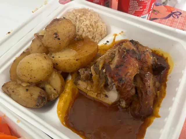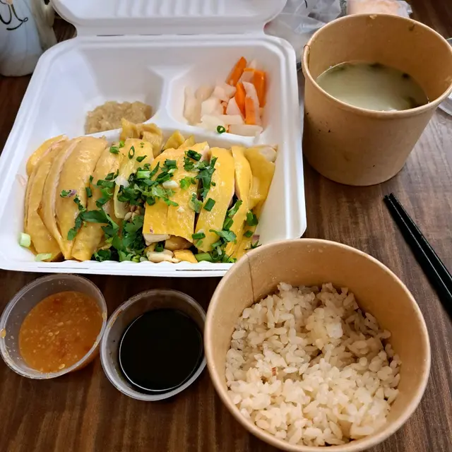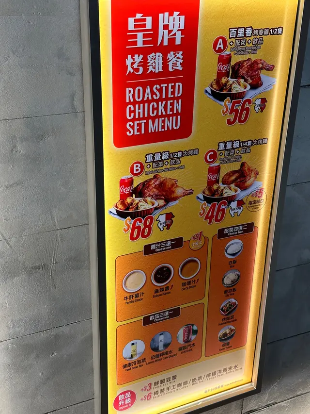 無骨海南雞飯﹕賣相都唔錯,雞都幾滑,雞油飯味道幾香,套餐加配紫菜豆腐雞湯,清清地不錯。惹味豚肉湯米線配可樂﹕適合小朋友食,正常發揮米線一碗。重量級炸雞餐配咖哩汁﹕四分一隻焗雞加上咖哩汁實在好惹味,辣得好過癮。套餐揀左焗薯咸咸地、雞油飯,仲有可樂,實在太抵食。…查看更多