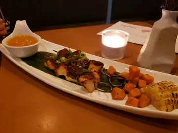 主菜有牛肉同埋一個魚串燒個魚串燒真係不得了肉質滑同埋個醬汁有新鮮芒果味又有少少好似泰式酸辣咁樣個咪非常之夾 強烈推介魚串燒