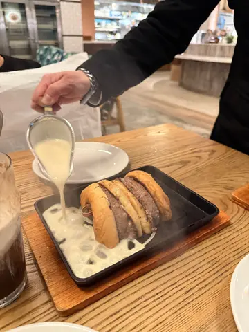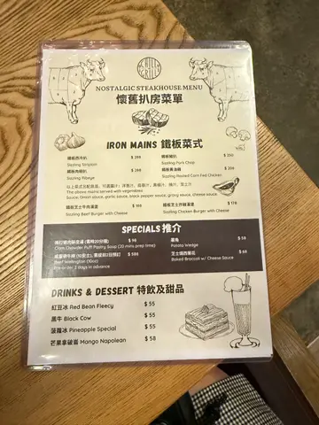 位於西環的西餐廳。有時唔想承認自己已變老,但事實上又不得不承認。最明顯的轉變是,所謂人老左特別喜愛想當年,童年回憶雖然未必每一幀每一格都值得回味值得留戀,但開心愉快的事倒是忘記不了;例如小時候的食大餐,所謂食大餐,當年簡單ᴅ, 一個滋滋炸炸的鐵板餐,已經是非常奢華了。.而西環這間餐廳推出了懷舊鐵板ᴍᴇɴᴜ,為了想吃回這種回憶中的味道,便偕同好友特地過去一訪了。.餐廳以藍色搭配淺木色的裝潢風格,搭配水晶燈及拱形窗。而穿過小小的拱形門進入餐廳後,偌大的用餐空間映入眼簾。而望出去就是甚有歷史痕跡的西環邨。望著這舊屋邨,吃著這種鐵板,有趣。 ⋆_____ᴛᴏᴛᴀʟ ᴏʀᴅᴇʀ______⋆ ✿ ꜱɪᴢᴢʟɪɴɢ ʀɪʙᴇʏᴇ $288點了五成熟,肉眼上菜時會用一塊大鐵板盛著,滋滋聲配上烤肉的香氣實在非常誘人;肉眼肉質粉嫩細緻,賣相吸引;惟始終用鐵板持續煎煮著,到拍完照放一輪後,肉質已有點過熟而變韌,因此還是趁早食為妙。.✿ ꜱɪᴢᴢʟɪɴɢ ᴄʜɪᴄᴋᴇɴ $208這份鐵板黃油雞大大隻,尤其雞脾部分肉嫩味濃,而且雞肉本身無懼鐵板的持續煎煮,因此攤放一輪後依然肉質嫩滑,連我這種超級偏心的牛魔王,也私心認為比起牛扒更好食呢!.✿ ᴄʟᴀᴍ ᴄʜᴏᴡᴅᴇʀ ᴘᴀꜱᴛʀʏ ꜱᴏᴜᴘ $98既然是懷舊鐵板,當然也要點一份酥皮海鮮湯。酥皮海鮮湯味道豐富,層次分明,而其酥皮自然就是靈魂所在,烘烤後酥皮酥脆可口,帶有黃油香;浸入海鮮湯內一併吃用,與湯的濃稠形成對比,整體鮮美濃郁。.✿ ᴅʀɪɴᴋꜱ: ʙʟᴀᴄᴋ ᴄᴏᴡ / ᴘɪɴᴇᴀᴘᴘʟᴇ ꜱᴘᴇᴄɪᴀʟ $55@黑牛就是可樂上放入雪糕,小時候覺得最好飲的餐廳飲品莫過於此。長大後雖然覺得可樂與雪糕不夾,但主打就是一個童年回憶嘛;而菠蘿冰同樣放上雪糕,清甜的菠蘿冰與雪糕更夾,清新可口。.✿ ᴅᴇꜱꜱᴇʀᴛ: ᴍɪɴɪ ᴍᴀɴɢᴏ ɴᴀᴘᴏʟᴇᴏɴ $58這份芒果拿破崙層次豐富,賣相精緻,結合了新鮮芒果的自然甜香與果香,口感對比鮮明。夾層中的吉士醬綿密滑順,增添濃郁奶香,整體清新不膩。…查看更多