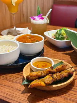 將軍澳澳南海岸面向海旁,又被大量樹木包圍,沿住海岸走走,好有渡假感.餐廳主打印度菜,泰國菜,馬來西亞菜.已經第二次嚟,質素依然保持有水準!而且午餐更加優惠,一個價錢已包小食,主菜,甜品及飲品,另加小食都好着數!最抵讚係逢兩個星期餐廳都會轉餐牌,完全唔會食悶人!啤酒又有買一送一嘅推廣!牛油雞咖喱配香飯和烤餅+冬陰公湯+椰子雪糕+泰式奶茶,咁多樣嘢都係$144!!連餐湯都咁有水準味道香濃,完全帶出東南亞風味!牛油雞香辣惹味除咗包Nana仲要包飯,飽肚感十足!串燒有炭香味,肉碎勁香又巨泰式風味.單吃都很喜歡~泰式乾炒雞肉炒河粉($118)河粉煙靭有彈性,好多餸.加了不少泰式香料~極度惹味亦好有鑊氣越式炸春卷($98)共4條,又長又大.內裏餡料爆滿!配搭新鮮蔬菜更加清新,老實講,呢個小食真係好飽肚!如果最後想食芒果糯米飯嘅,真係必須要留肚.份量好大,共三個球狀糯米飯,煙靭軟糯,又有好香椰汁味.加上芒果非常甜,冇酸味.食完一定大滿足!…查看更多