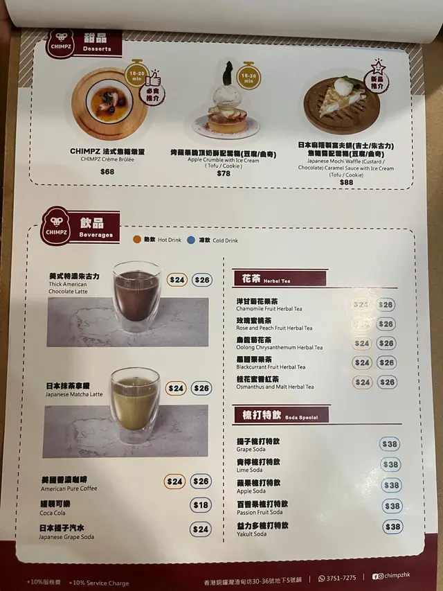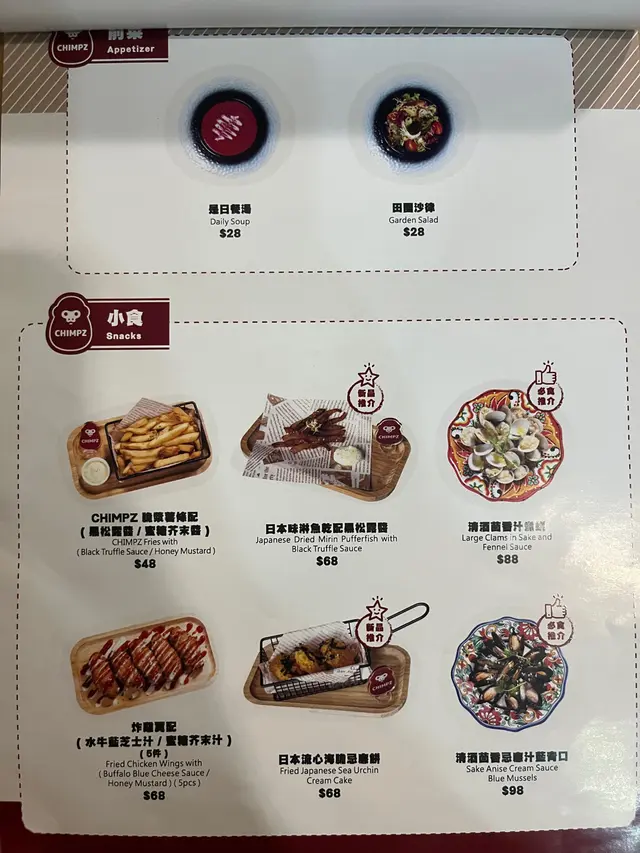 CHIMPZ (銅鑼灣) 網址: https://s.openrice.com/QrbS0eoeB00 地址: 香港銅鑼灣渣甸坊30-36號利發大廈地下5號舖 電話: +852 37517275