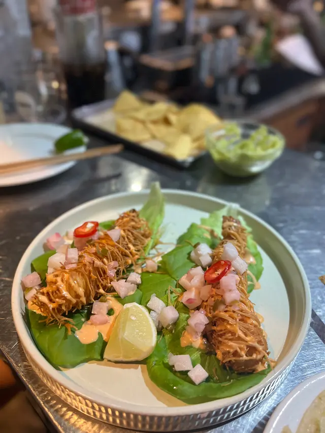 呢度既選擇都頗多, 樣樣都好吸引有啲唔識揀😝Mushroom Salad 🥗 ($138)堆到成座山咁高既沙律既份量有啲俾佢震懾左, 本身諗住係一個好普既沙律, 點知食落幾有驚喜😍 沙律菜中間夾雜左好多大磨菇片同燒過既墨西哥辣椒, 所以食落辣辣地幾惹味😋Kataifi Shrimp 🍤 ($118) 炸到外脆內陣牙既大蝦有啲似港式既芋蝦, 配埋塊生菜同沙律醬一齊食超正🤤 Marinated Pork Taco🐷($50)有啲似港式叉燒既豬肉配上清甜既菠蘿同蕃茄, 食落酸酸甜甜同個豬好夾👍🏽Chicken Tinga Taco🐔 ($48) 嫩滑既雞肉配上醃洋蔥同牛油果味道夾得黎又幾有口感😎Duck Carnitas 🐤($50)鴨肉好腍身簡單地配左提子番茄汁已經好好食, 鴨肉既份量都幾多🤓呢度既環境幾舒服, 食物質素幾有驚喜, 係香港比較少有好食既Tacos😍 …查看更多