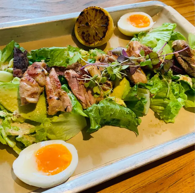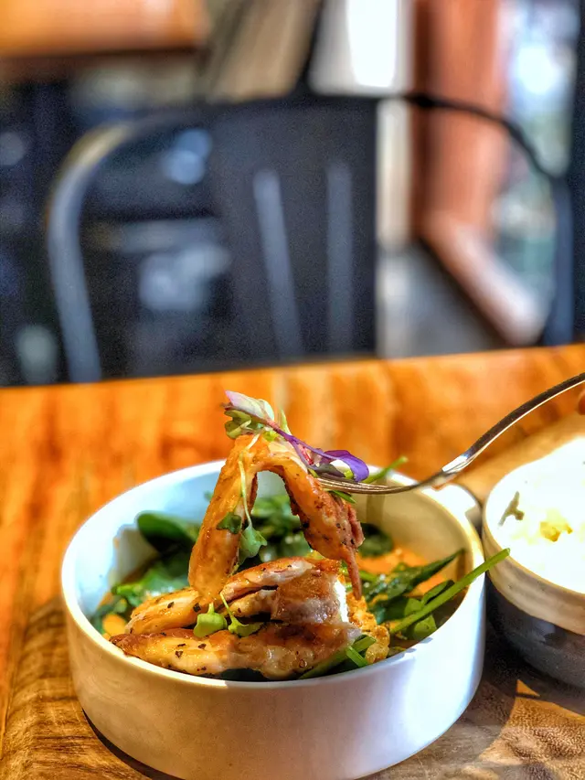 檸檬牛油燒雞。菠菜葉。糙米飯