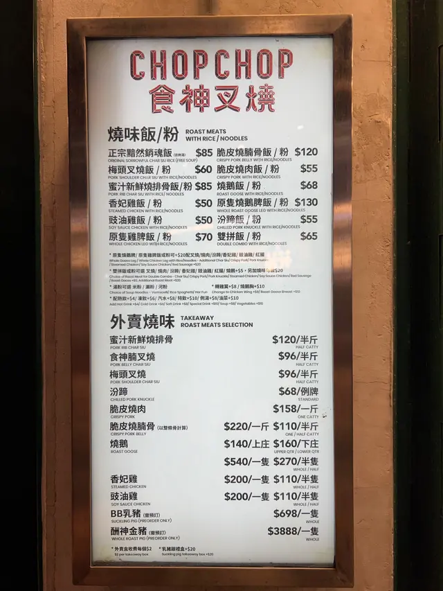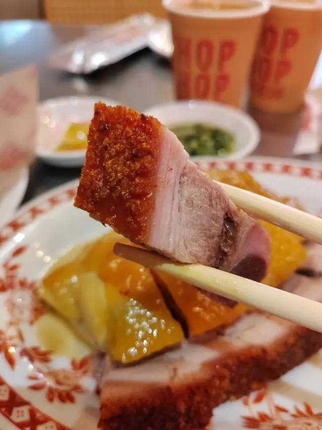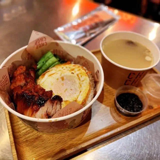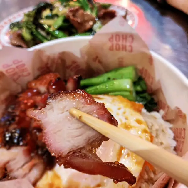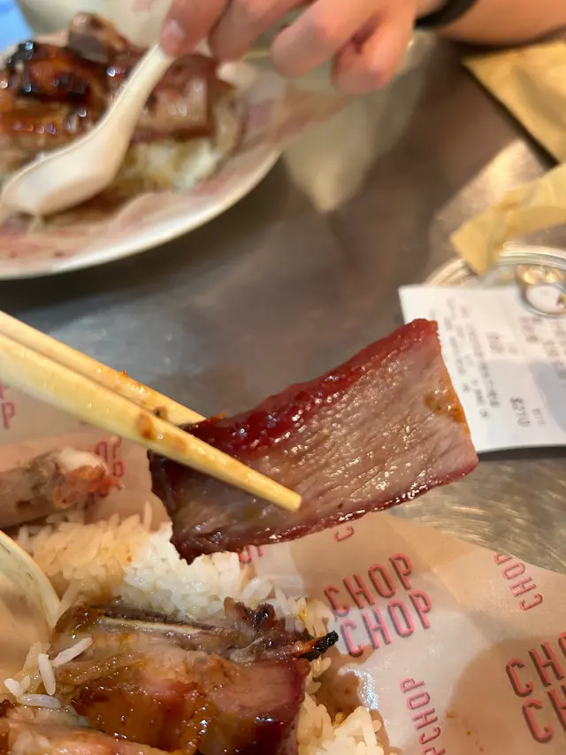 7:45pm二人- - -兩人叫左 燒排骨拼叉燒飯($85 + $20,要求半肥瘦叉),唔包湯亦唔包嘢飲,價格確實比較進取。嚟到見到滿滿既肉簡直令人垂涎三尺,賣相唔錯。先講個燒排骨,少許燶邊,肥瘦比例幾好!要注意一件都會有幾粒尖骨。叉燒雖然叫左「半肥瘦」,但結果都係瘦而且比較乾… 史提芬周話齋:零分!叉燒亦偏鹹,食唔出麥芽糖香味。叫得 食神叉燒,估唔到今日美中不足卻係叉燒!- - -順帶一提,我覺得燒味汁過多所以白飯過鹹。- - -服務方面:本來想要走入少少坐,但阿姐堅持我地坐門口位,坐咗咁耐一杯水都冇俾… 明白職員想要清潔少張枱及鼓勵客人買飲品,但食得嚟個價格我覺得佢哋服務方面可以改進。- - -總體嚟講食物係OK嘅,不過至於「食神叉燒」呢個稱號,我就有所保留。得閒咁啱經過不防可以試,但廉價好食嘅叉燒呢個區都有好幾間,無必要特登過嚟食。…查看更多