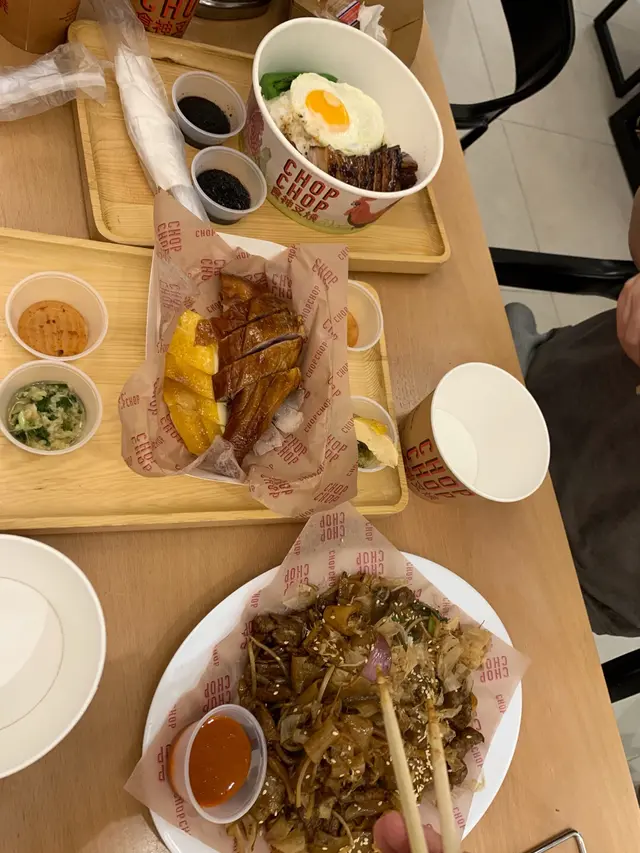有一行過沙田新城市見到開咗一間好靚嘅燒味舖,沙田冇棋哥燒鵝😂係好奇心嘅驅使下我都叫咗一個外賣三餅飯來食🤪估唔到食燒味個盒都可以咁靚叫咗燒鵝、梅頭瘦叉同埋油雞,一次過試晒三款餸。徐克附送有三種醬汁,三款我都試晒,燒鵝佢係切咗好似朱古力磚咁嘅燒鵝肉,比平時食開大大啖嘅唔同,不過都唔會好少,仲要好好味。梅頭瘦叉已經好似半肥瘦,幾惹味,絕對唔係燒到乾爭爭嗰種。豉油雞就比較屬於無驚無喜嘅一個餸。Addressss:Chop Chop 食神叉燒 沙田新城市廣場三期3樓A325號舖查看更多