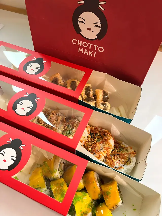 chotto maki經過中環街市,法國有好多嘢食,可惜非常之多人,決定走遠少少,去到利源西街,見到chotto maki~~~由於主要食手卷,輕食為主,所以人流都走得快,等位都相對方便💗呢度嘅手卷壽司都好得意,可以俾你自由選擇入邊放咩配料,我就冇自訂配料,我就選咗本身餐單上有嘅卷物,ebi- taiko,同埋double s😆啲名都好特別ebi taiko入邊嘅配料係由天婦羅炸蝦😍成個配搭非常之好,天婦羅炸蝦,非常之新鮮!我外賣唔係即刻食,都食嘅時候仍然係好脆卜卜😍😍另外,double s係有三文魚,帶子粒,仲有少少辣味嘅醬!其實呢間舖頭嘅醬料好特別,應該係自己調教,平時喺出邊其他壽司舖都好少食到呢種味道😍😍😍佢灣仔仲有分店,得閒真係要去幫襯吓先得,因為可以有好多唔同嘅配搭,每次食都仲好有新鮮感!而且係即叫即整,食材非常新鮮!…查看更多