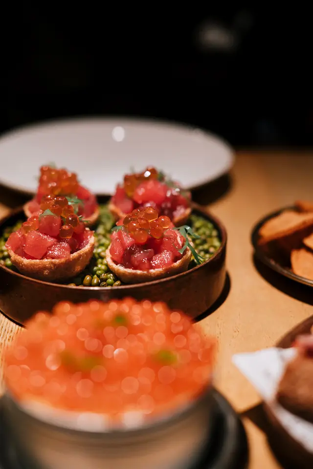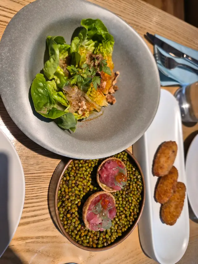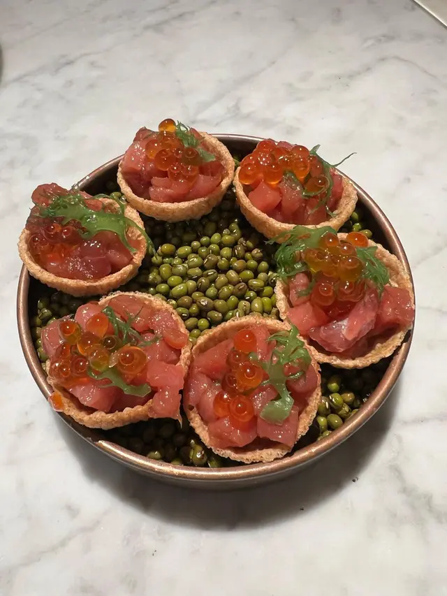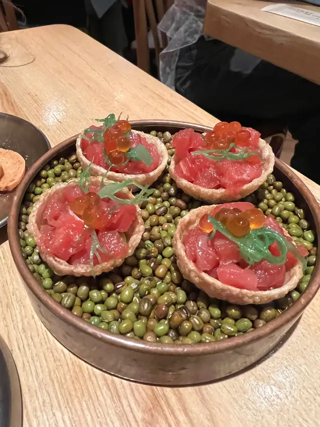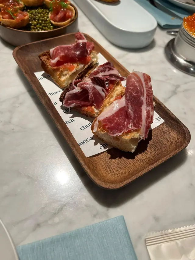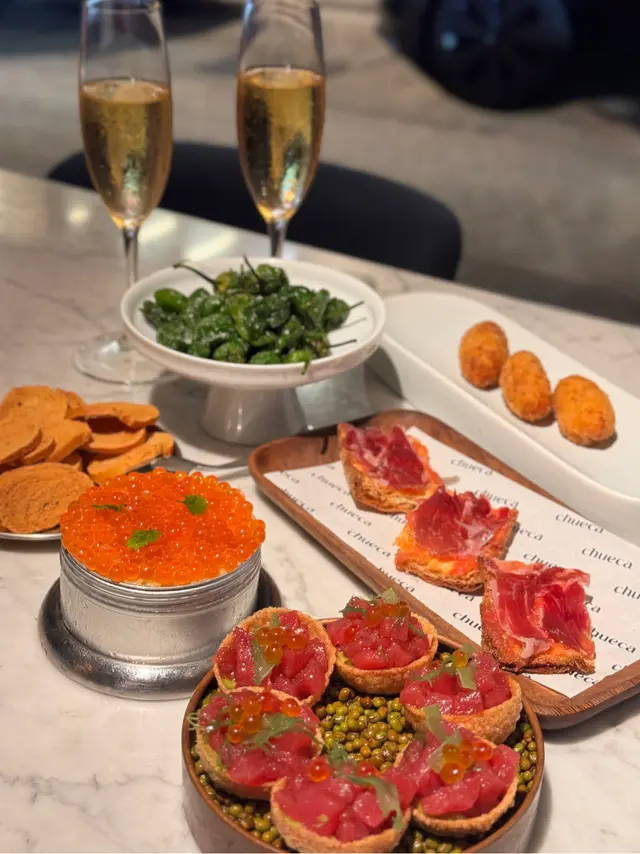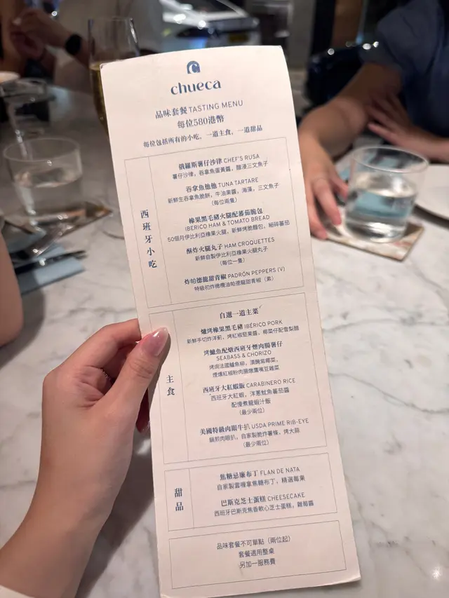 這間人氣高級西班牙餐廳位於中環歌賦街,主打正宗地道的西班牙美食及飲品,由外國人親自主理,嚴選優質時令食材,是米芝蓮必比登推介JUNO的姊妹店。店內環境寬敞舒適,樓底高身特別靜謐,裝潢以歐陸風格為主,色調藍白色充滿異國風情,好適合約會或慶祝。品味套餐 - $580/位每位包括所有的小吃,一道主食,一道甜品俄羅斯薯仔沙律鋪滿粒粒醋浸三文魚籽,一咬爆出鮮甜的水份及淡淡的醬油香,軟糯的薯仔蓉融合滑順豐厚的吞拿魚蛋黃醬,更有少少細膩的吞拿魚碎肉,蘸上多士片上更具口感。吞拿魚他他切成小粒的吞拿魚刺身柔軟且無筋,有濃厚的魚味,又有滑膩的牛油果醬、海藻及三文魚籽,脆餅增添口感。橡果黑毛豬火腿配蕃茄脆包嚴選優質的50個月伊比利亞橡果火腿,油脂豐富且細膩,滑順柔嫩有極致濃郁的榛果香氣,新鮮烤脆麵包塗滿細碎蕃茄,酸甜醒胃。酥炸火腿丸子新鮮自家製伊比利亞橡果火腿丸子,外層酥脆金黃而不膩,內餡濃郁滑順,火腿增添濃郁的香氣。炸帕德龍甜青椒採用特級初榨橄欖油,有橄欖天然的新鮮果香味,帕德龍甜青椒清新細膩不辣。爐烤橡果黑毛豬一片片肥瘦相間的黑毛豬腩肉軟腍多汁不柴,可蘸上烤紅椒堅果醬香甜濃郁,又有新鮮手切炸洋薊有淡淡的堅果香、椰菜仔及雪梨粒平衡膩感。烤鱸魚配燉西班牙煙肉腸薯仔烤焗法國鱸魚柳厚度十足,結實細嫩且無魚刺,有淡雅的清甜味,有酸甜爽脆的漬醃紫椰菜,煙燻紅椒粉肉腸燉鷹嘴豆雜菜富層次,西班牙香腸有煙燻和紅椒香。焦糖忌廉布丁自家製雲喱拿焦糖布丁細緻滑順得幾近入口即化,特別加入香草籽,有濃郁香醇的蛋香和焦糖香氣,精選莓果有士多啤梨、藍莓及紅桑莓酸酸甜甜。巴斯克芝士蛋糕西班牙巴斯克焦香軟心芝士蛋糕,外層焦香而內裡濕潤滑順,保留了豐富且醇厚的芝士風味,雜莓醬酸甜帶有水果的香氣。Peach Tea - $90白桃茶帶有淡雅獨特的錫蘭紅茶清新,再加入香甜的蜜桃果泥,混入酸甜的檸檬汁,酸甜平衡好清爽。English Breakfast Tea - $40茶湯口感紮實飽滿,帶有特殊的麥芽香。…查看更多