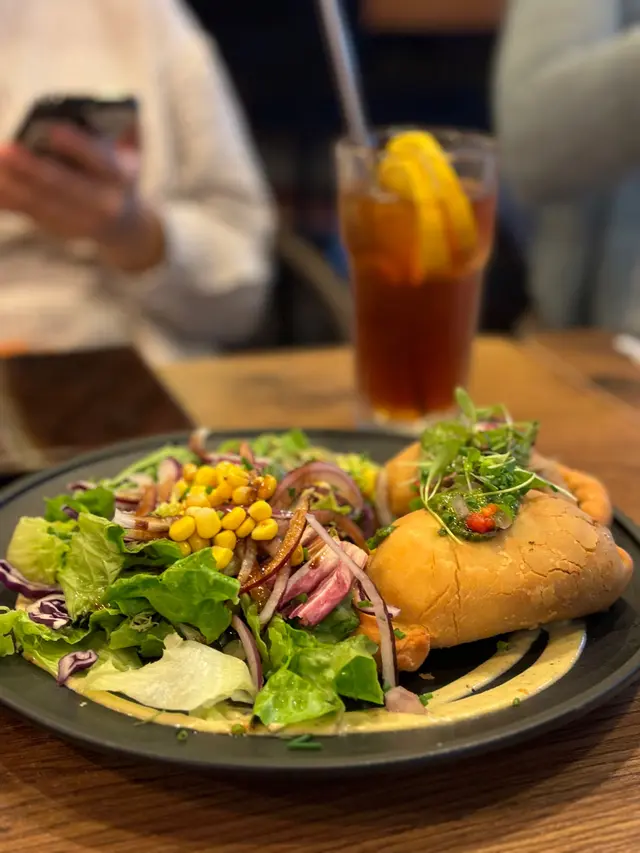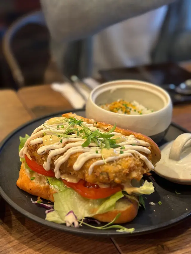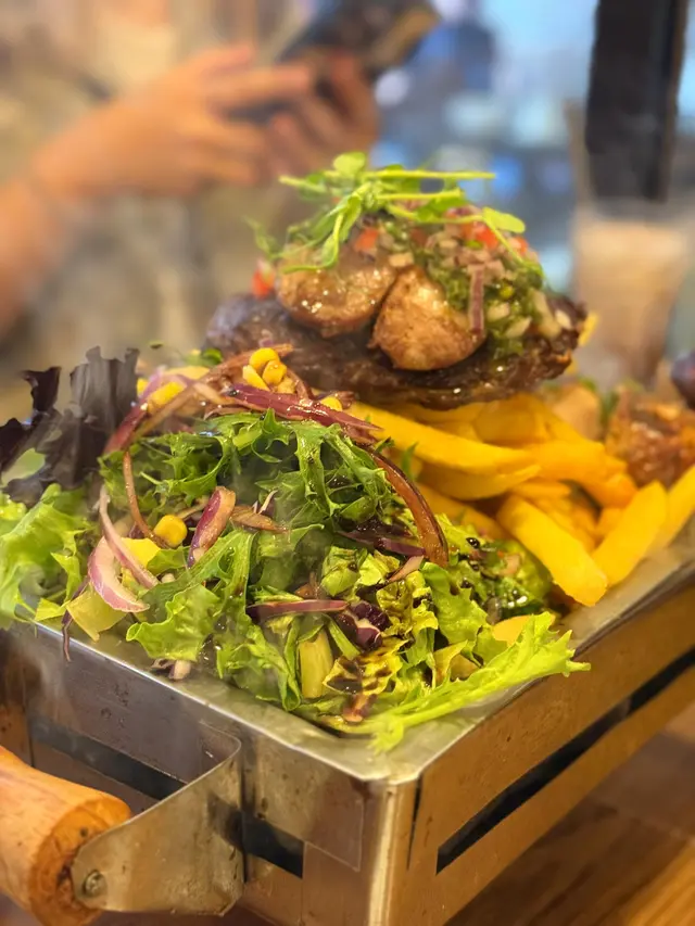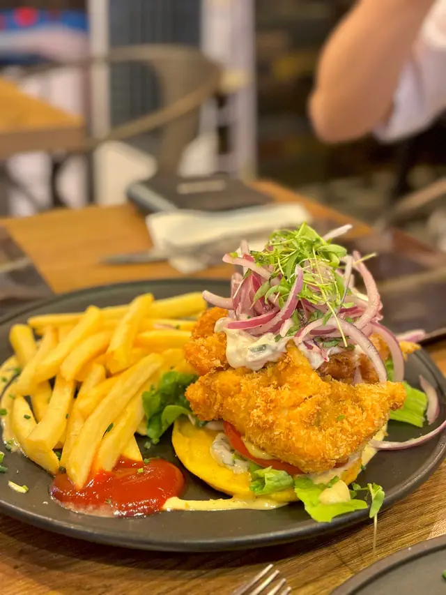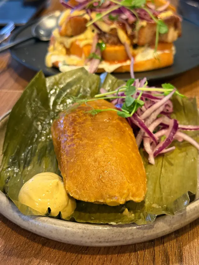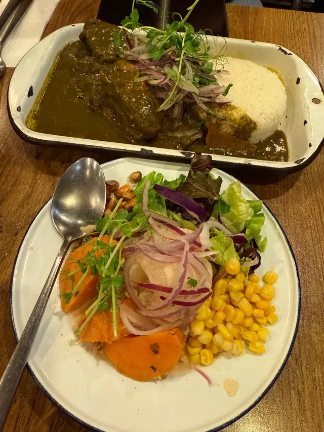 這次我點了三道完美展現秘魯菜的酸辣鮮香既菜式🥑Pulpo AI Olivo 牛油果烤章魚(或類似海鮮),搭配綠色醬汁、洋蔥和紅椒碎,旁邊有半個萊姆和一堆酥脆的玉米片(可能是秘魯風味的 cancha 或類似炸玉米片)。這道菜風格鮮明,帶有海鮮與辛香料的結合。🐙Peruvian Grill 呢個係秘魯signature 菜式包含一塊烤牛排,雞肉,表面塗有秘魯風味的 chimichurri 或 ají 醬。下方有勁多薯條和新鮮沙律,沙律裡有粟米和紫洋蔥,淋上醋醬。整體呈現出豐富的南美風味,適合搭配啤酒或雞尾酒。🍨甜品 Chocolate Rice Pudding 巧克力飯後甜點外觀誘人,奶香濃郁,巧克力味平衡甜美,米粒柔嫩帶嚼勁,香料增添溫暖感。外觀精緻,口感舒適,味道溫馨,完美適合飯後享受。秘魯風味用煉乳提濃,暗藏肉桂與可可香,地道安第斯風情。🍸飲品 Drinks 精心製作的拿鐵咖啡,奶泡上有心形拉花。適合唔飲凍飲既人☺️Cusqueña Golden Lager 啤酒這是一款來自秘魯的知名啤酒,與秘魯菜搭配非常合適。💁♀️服務我們坐到靠窗戶外位,望著街景邊吃邊聊,氣氛超 chill。服務員熱情親切,英文流利,還主動幫忙拍照。從點餐到上菜只需 15 分鐘,效率一流。音樂播放拉丁輕快曲,增添異國情調。✨環境餐廳環境充滿南美風情:彩色壁畫、羊駝公仔和國旗裝飾,吊燈由竹編製,讓人彷彿置身利馬街頭。座位輕鬆隨性,營造出熱情又活潑的氛圍,背景有酒瓶和裝飾品,顯然是一家注重文化特色的餐廳。適合午餐快閃或晚餐聚會! 總結